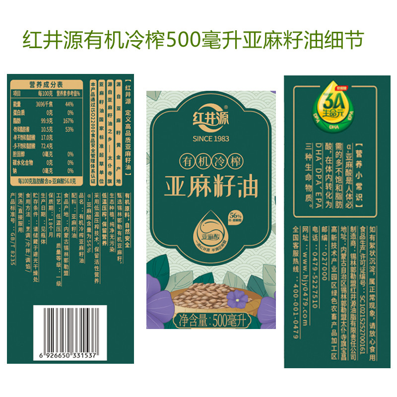 为您提供商品红井源纯亚麻籽油500ml冷榨有机食品初榨脱蜡孕妇内蒙胡麻油 包邮的详细介绍,