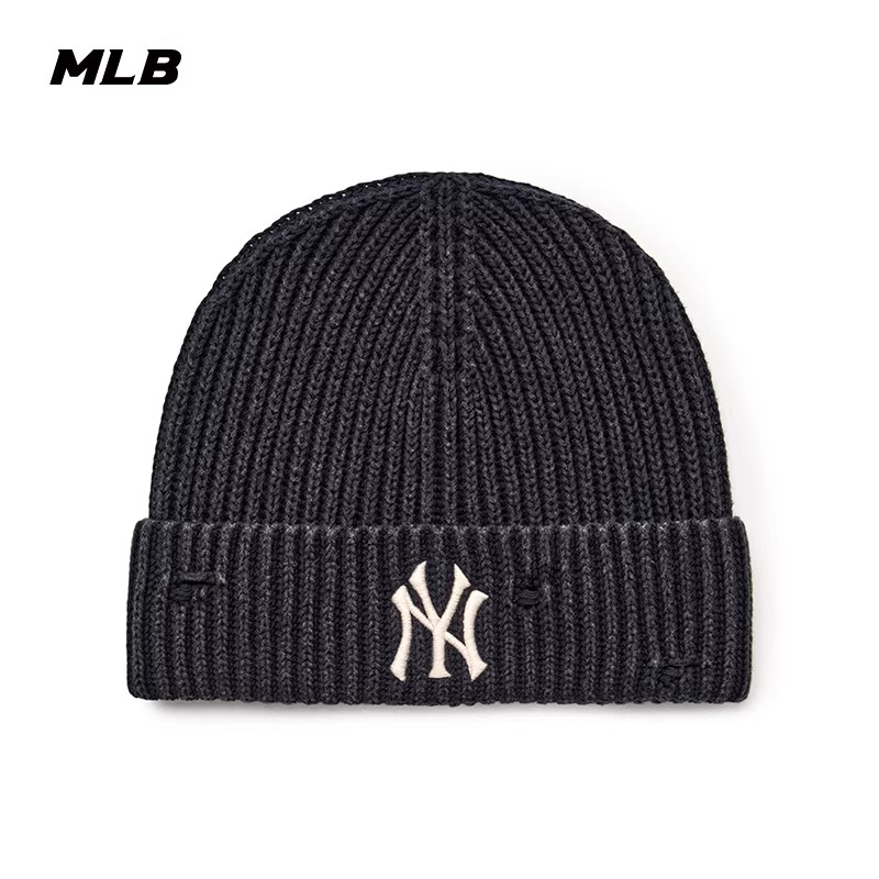 MLB官方男女情侣刺绣LOGO复古做旧休闲毛线针织帽25冬季 BNB06 新款由