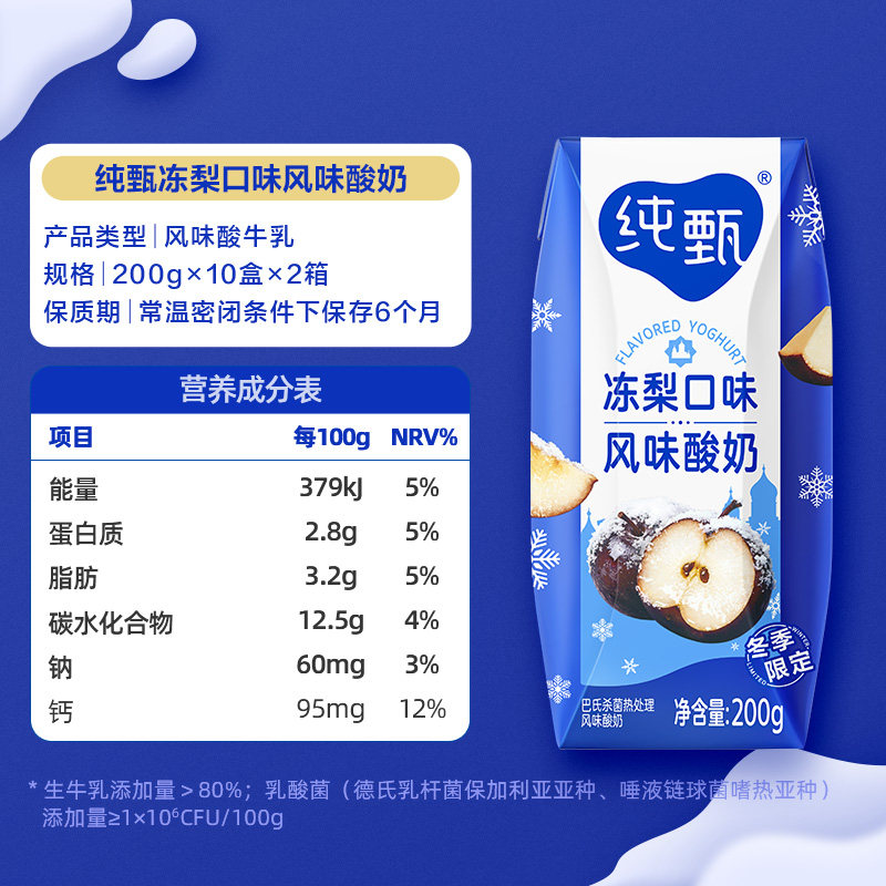 纯甄冻梨口味风味酸牛乳200g×10包×2箱 冬日限定