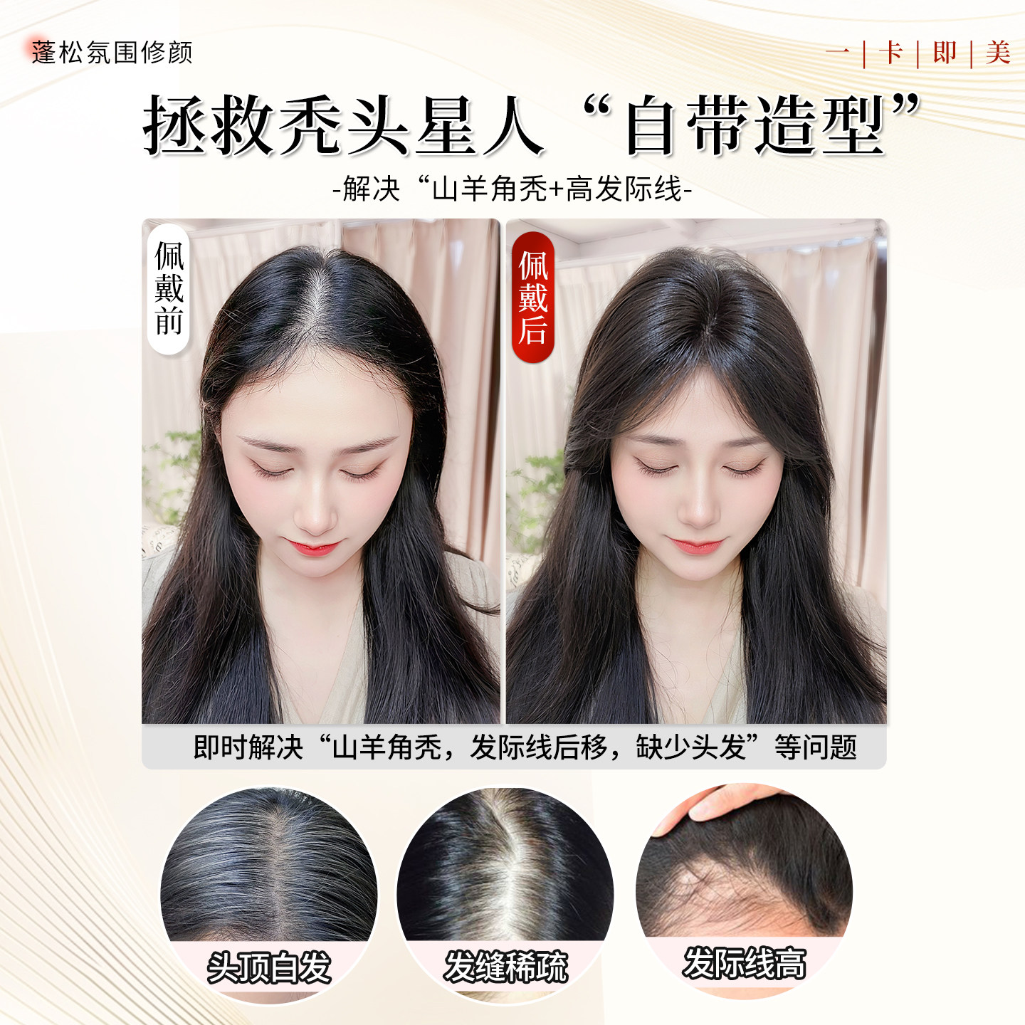 刘海片假发片女自然前额刘海补发片头顶遮白发增发量蓬松假发片