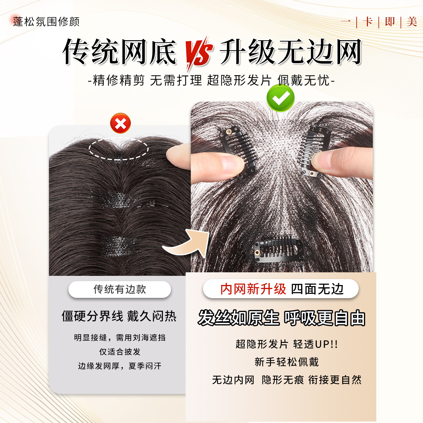 假发女片头顶增发量夏季 隐形遮白发神器蓬松高颅顶真发刘海片 薄款