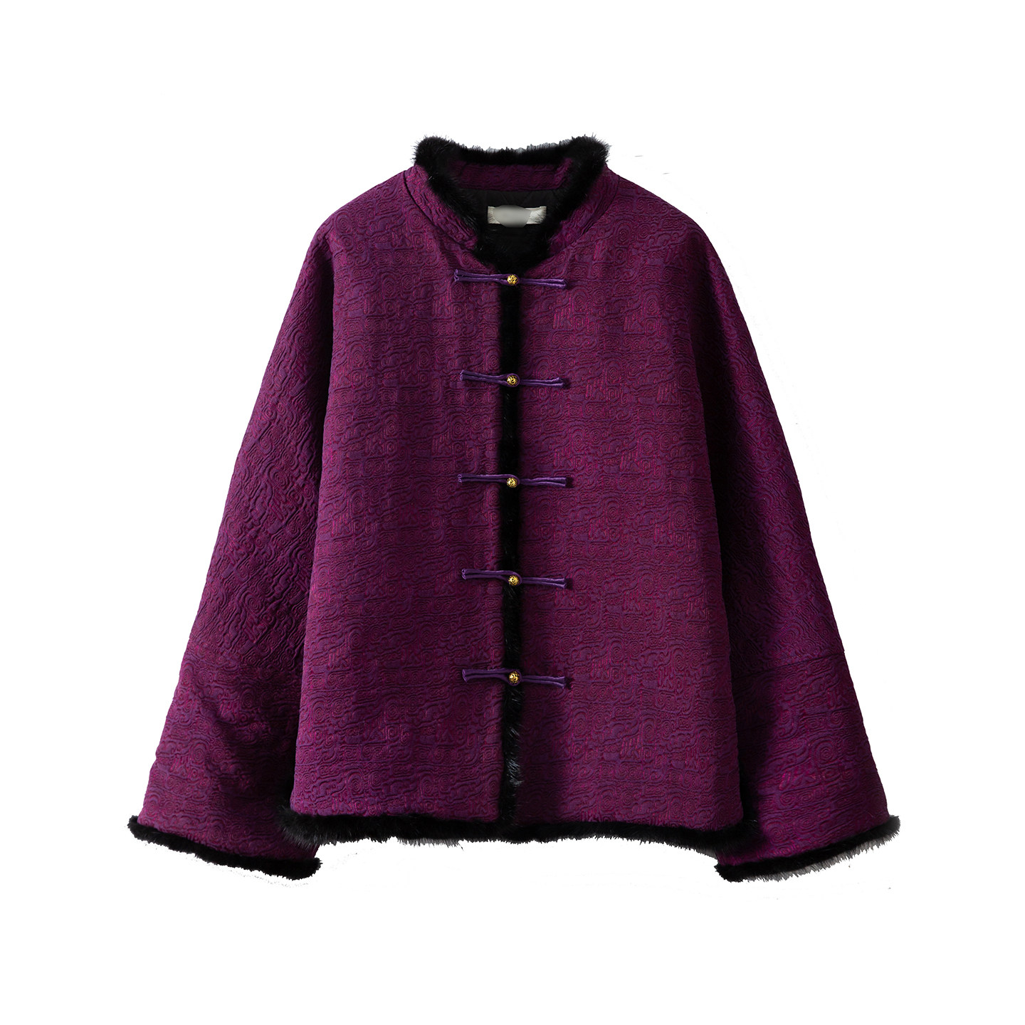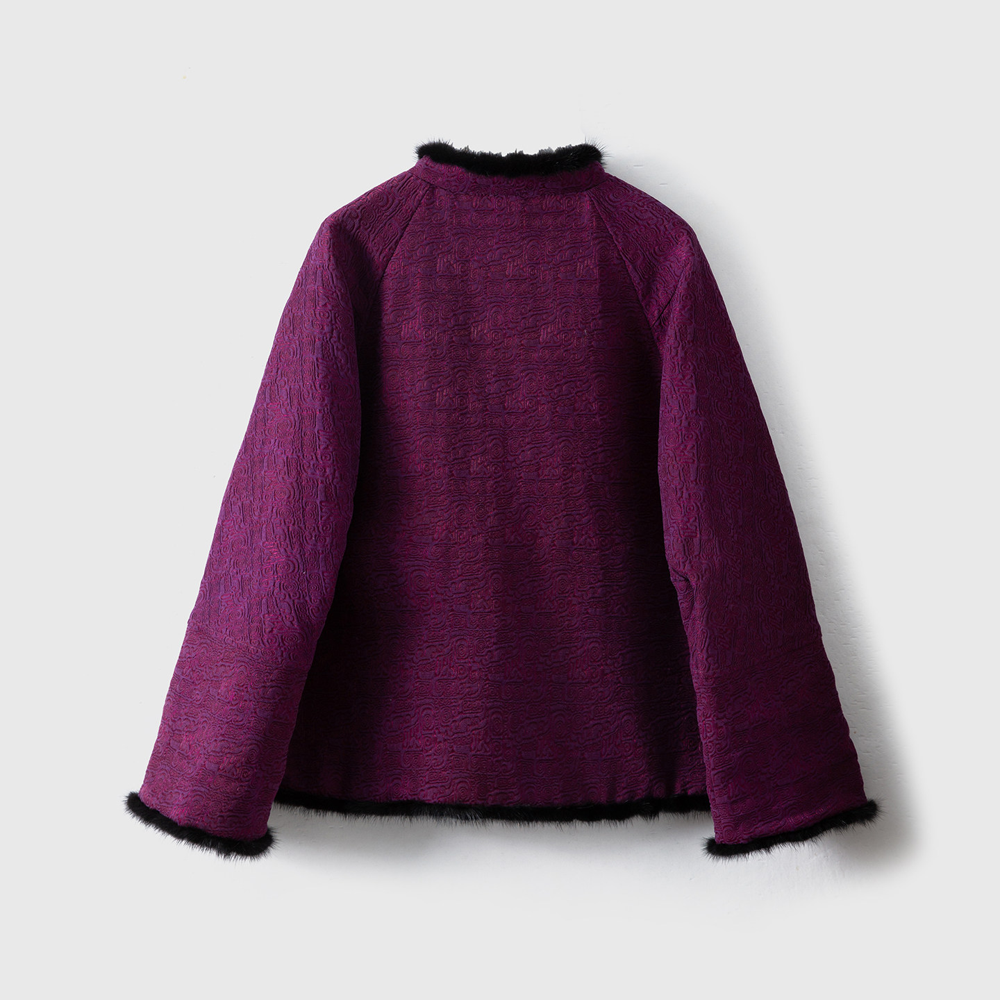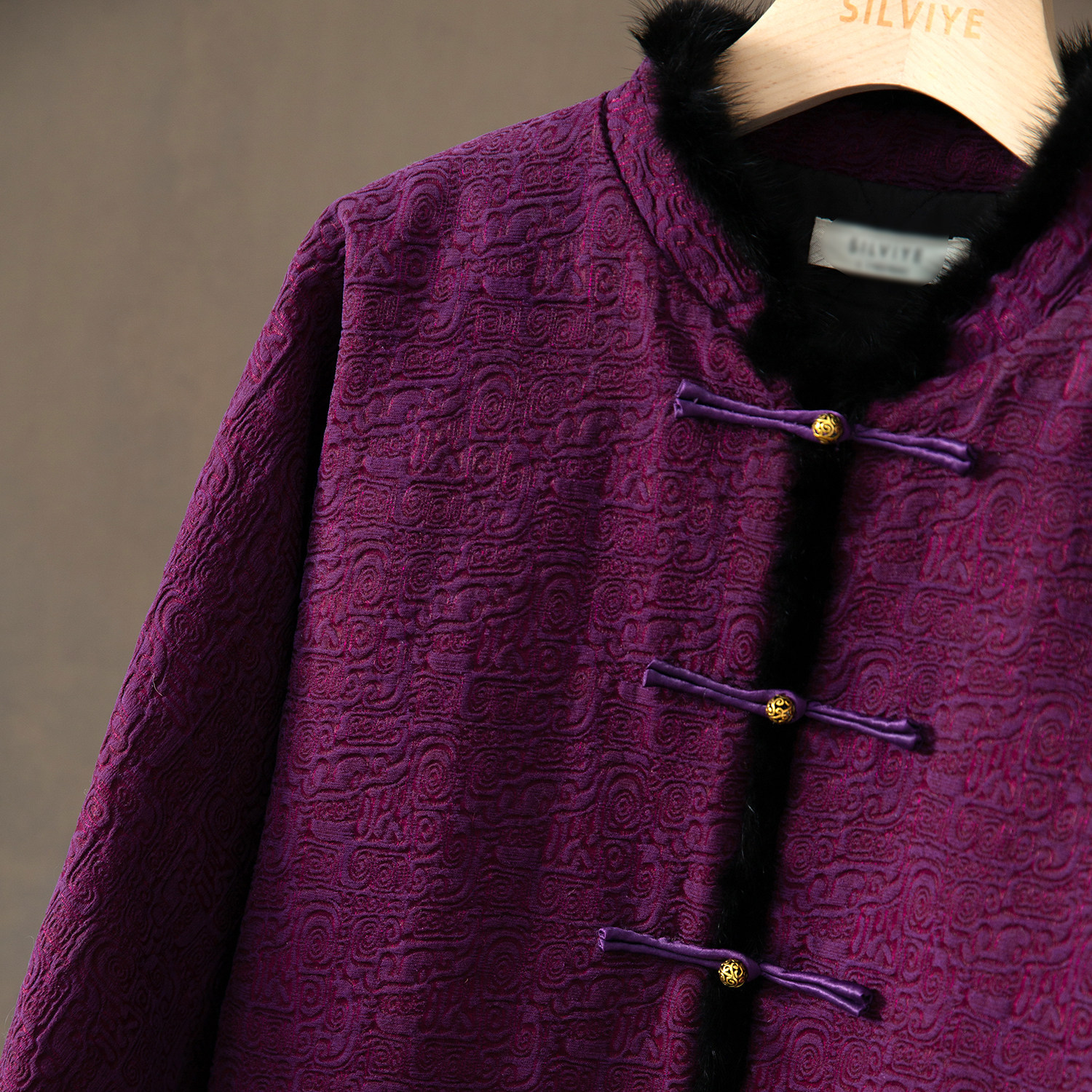 填充100%桑蚕丝50姆米锦油绸香云纱真丝水貂毛棉服女 SILVIYE溯也