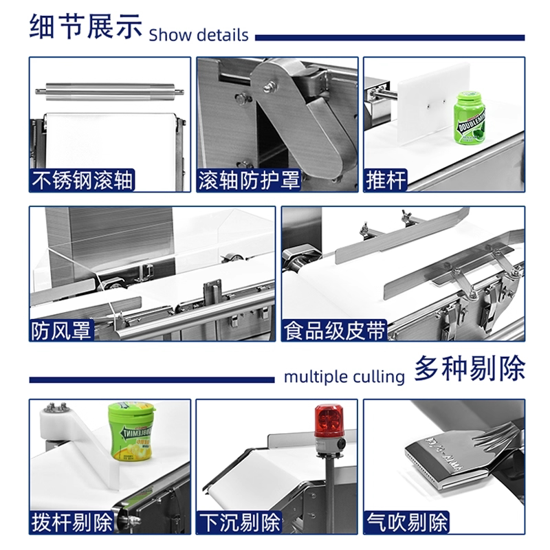流水线在线自动检重秤动态称重机重量分选机剔除机动力皮带滚筒称由
