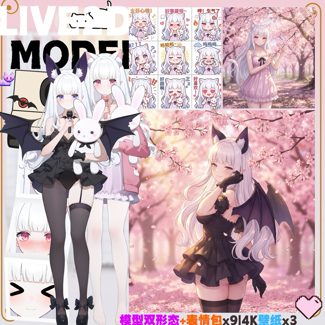 live2d虚拟主播成品黑白双生小恶魔皮套直播虚拟形象设计虚拟主播由