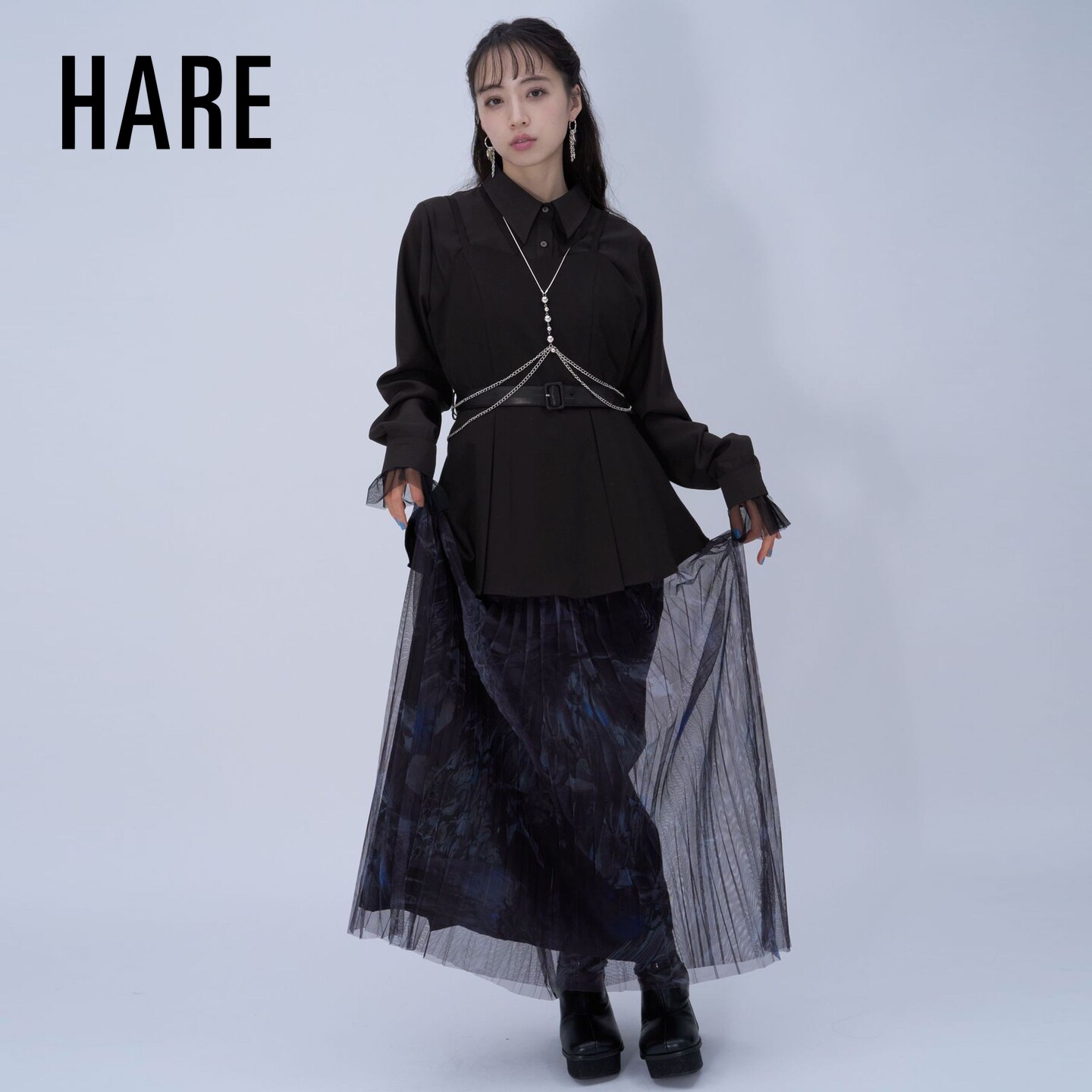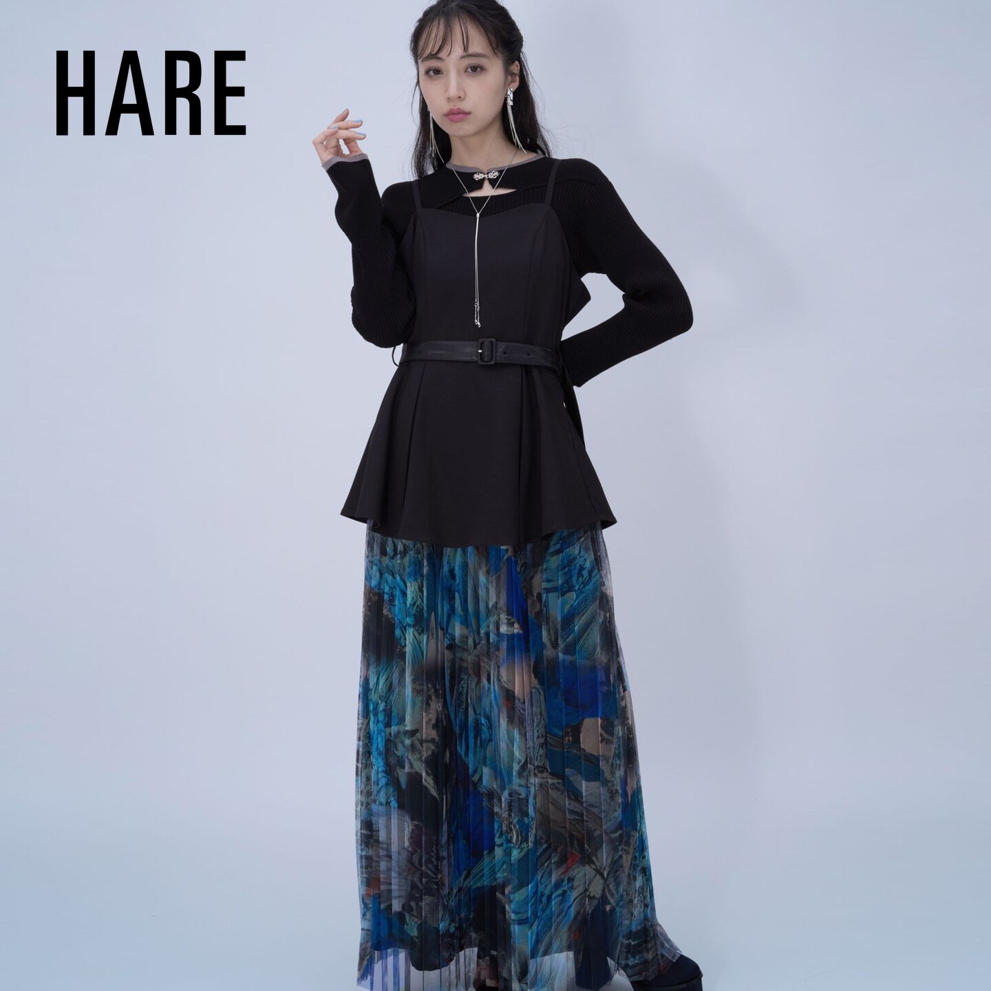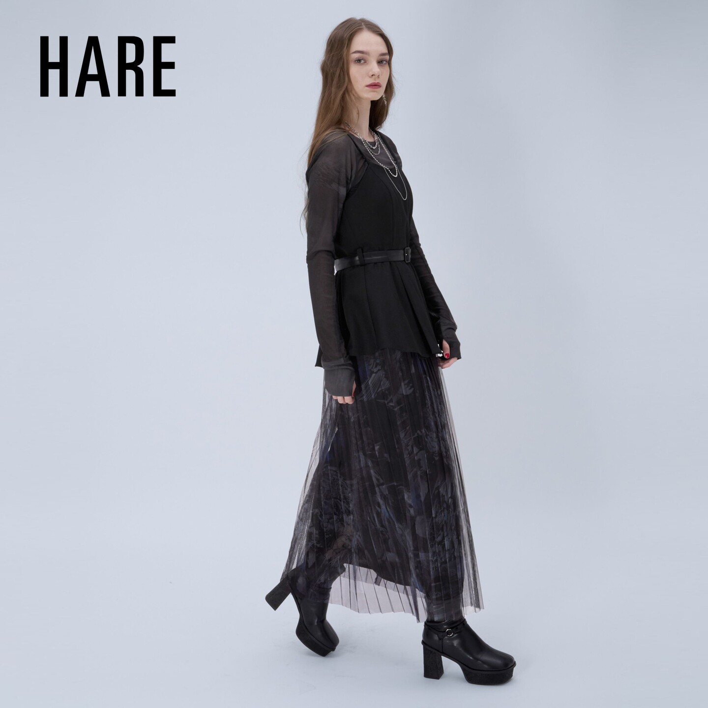 HARE晴诣系列2026夏季 女士透肤百褶层次细肩带吊带长裙634214 新款