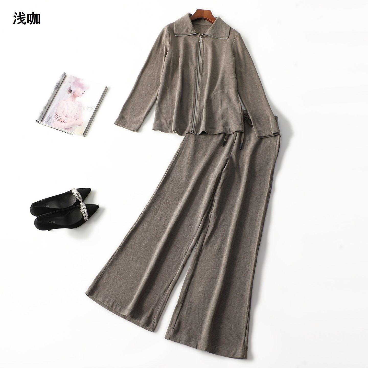 女运动休闲通勤慵懒时尚 2026春款 套装 两件套长袖 百搭阔腿裤
