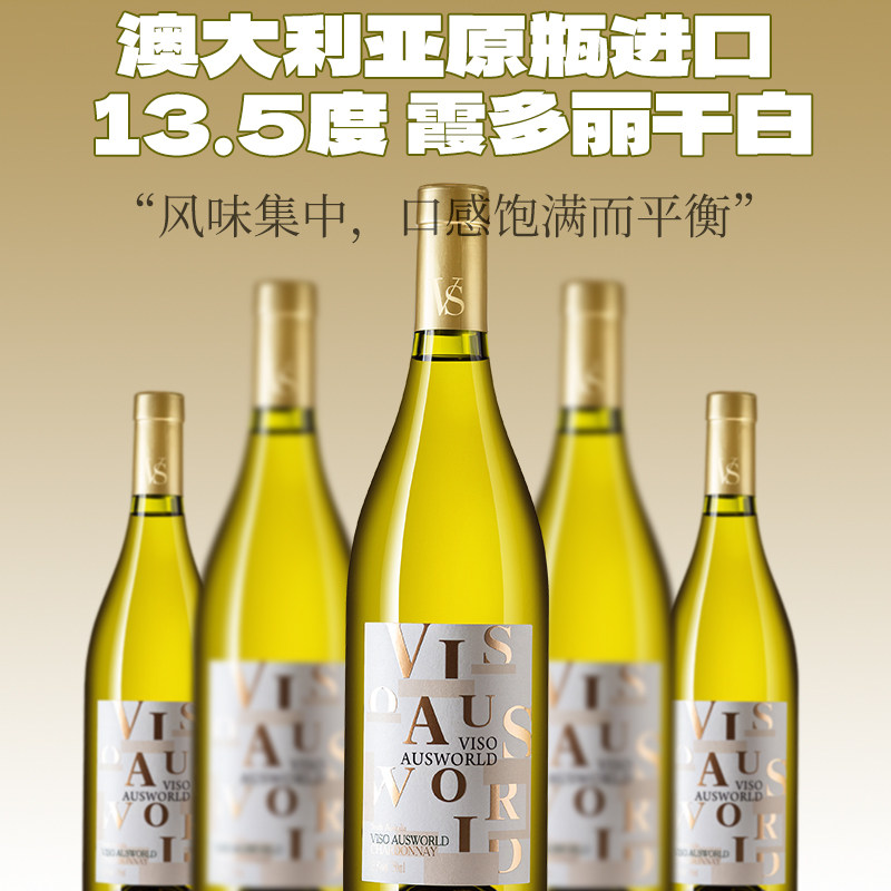 13.5度澳大利亚原瓶进口酒 整箱6支 霞多丽干白葡萄酒750ml单支由