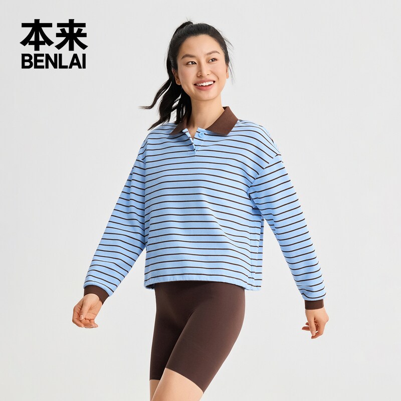为您提供商品本来BENLAI女士polo领条纹华夫格长袖 2026春季 新款 BNT460005 T恤衫的详细介绍,