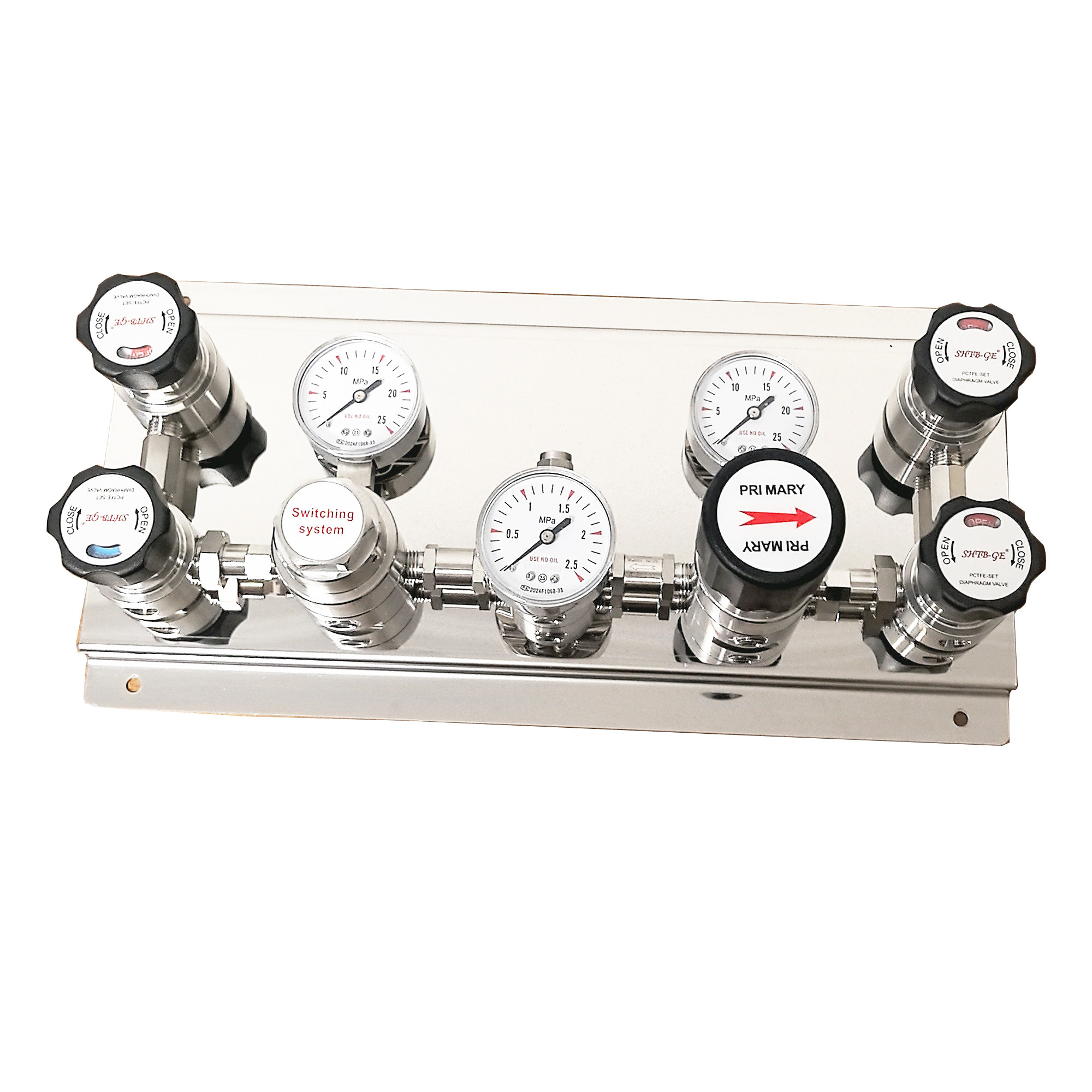 不锈钢316L 置 一备一用双瓶汇流排 双侧钢瓶降压阀 半自动切换装