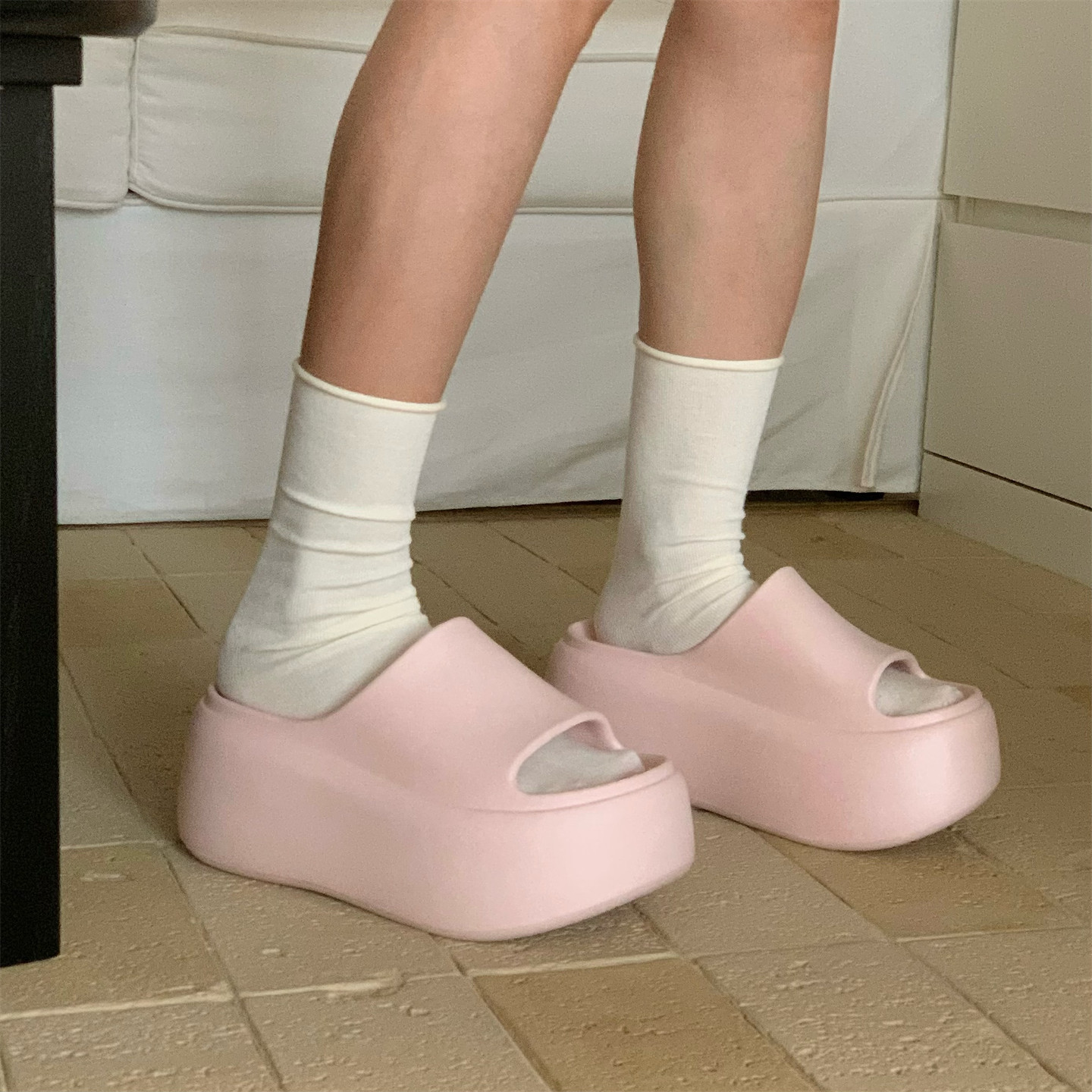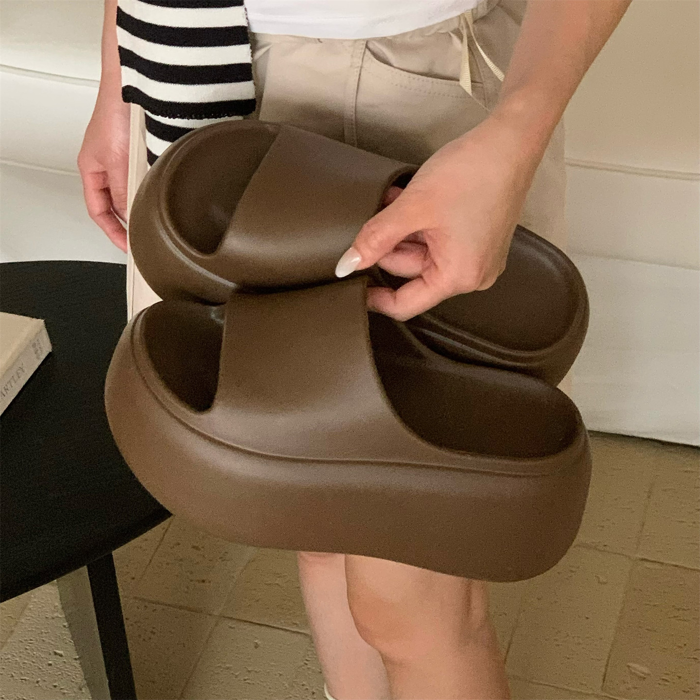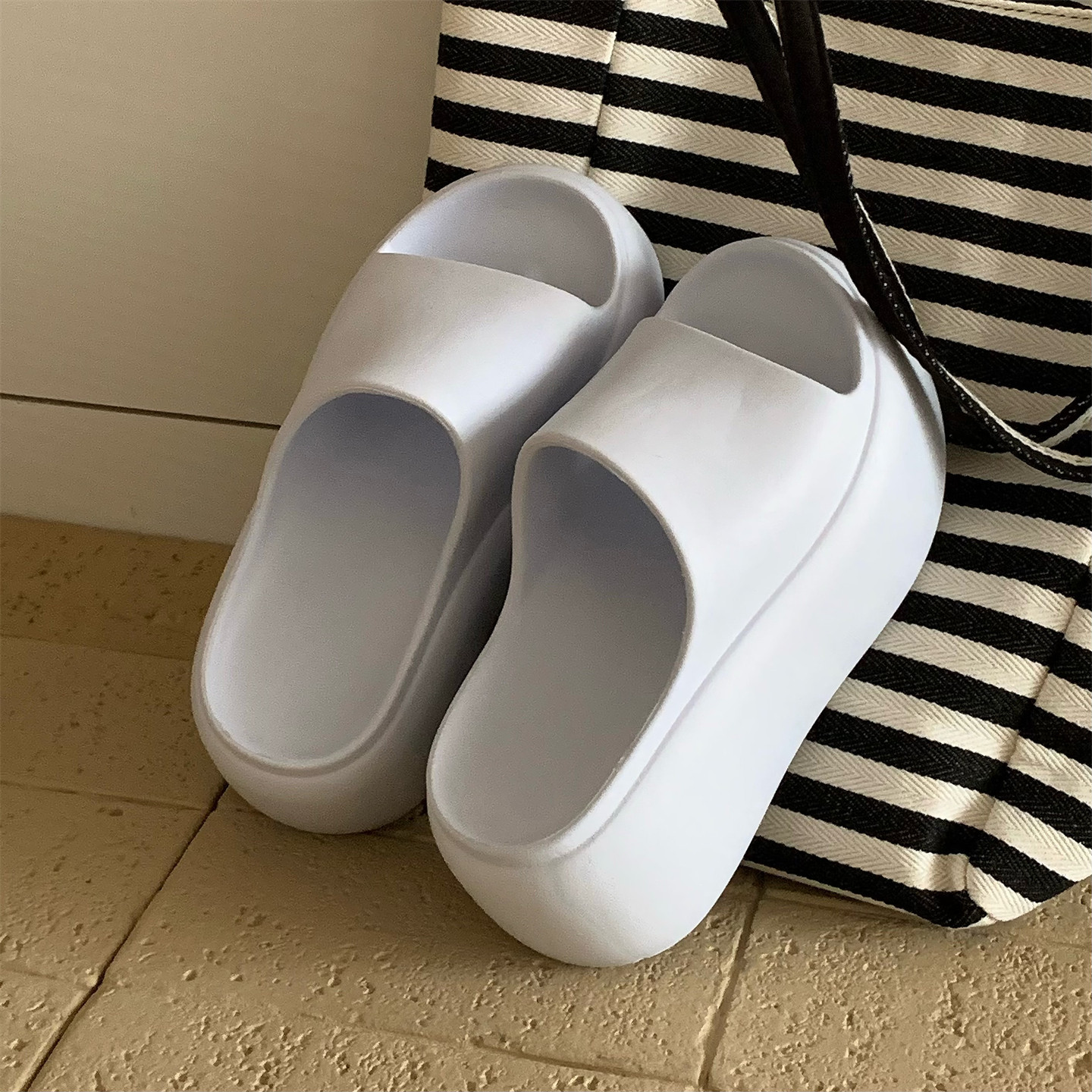 细细条 女户外沙滩防滑夏网红度假 简约百搭增高8cm厚底足弓凉拖鞋