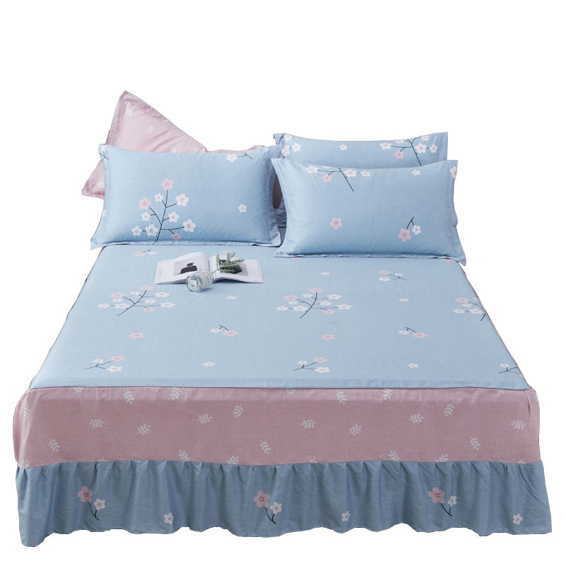 通用加厚防滑纯水洗棉三件套花边床笠罩 A类夹棉床裙单件床盖四季