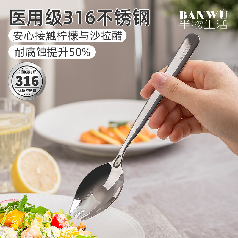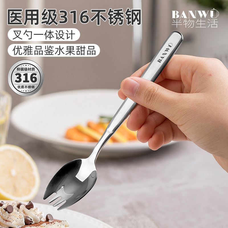 为您提供商品316不锈钢叉勺一体叉子勺子儿童水果叉沙拉勺甜品勺子高级感餐叉的详细介绍,