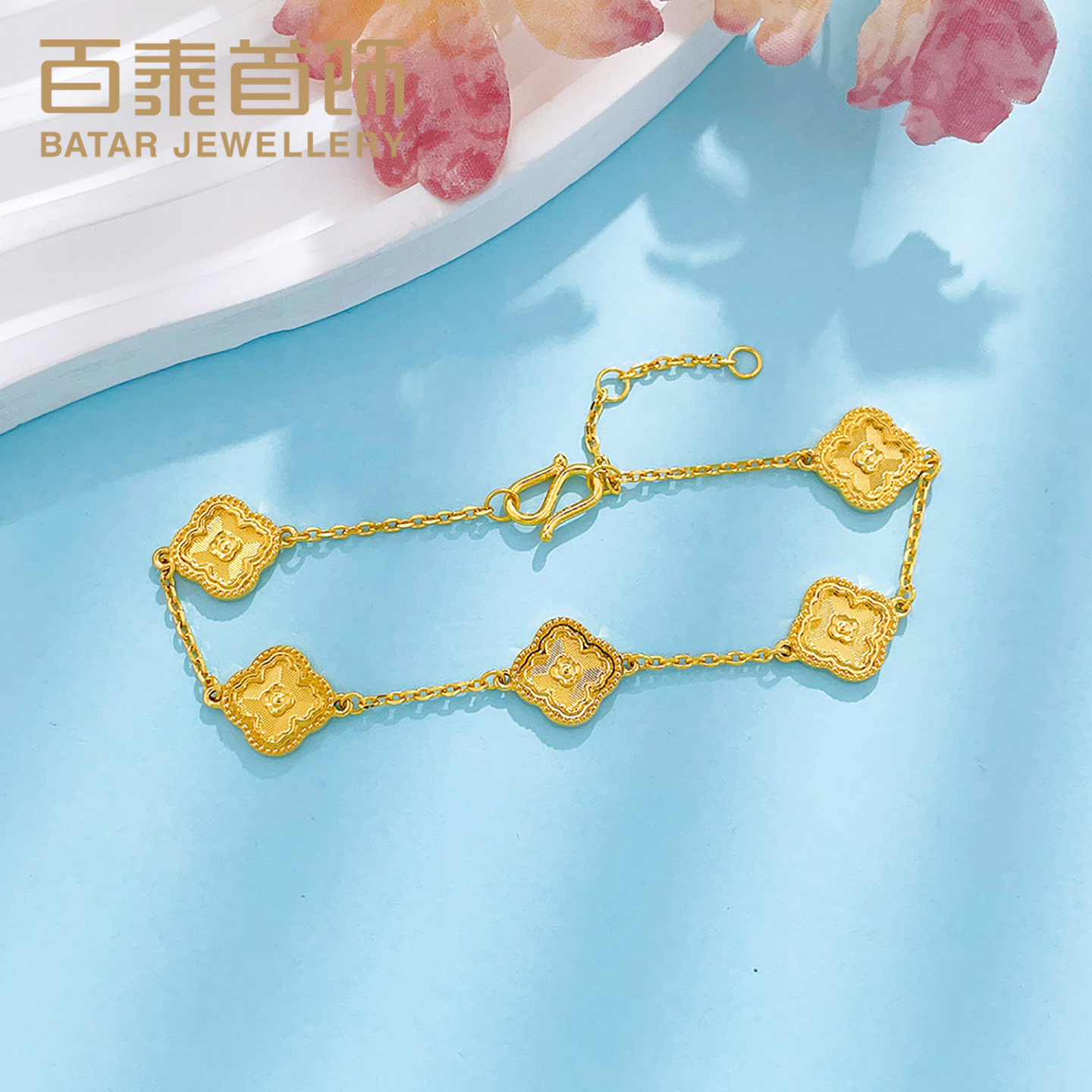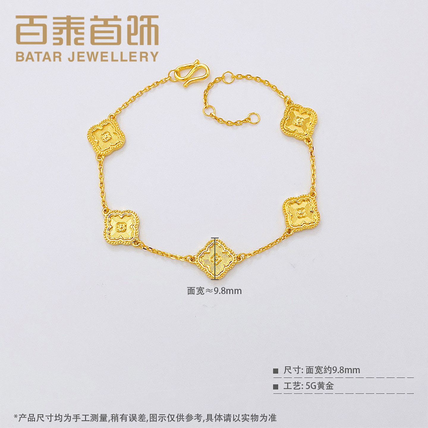 为您提供商品百泰首饰幸运四叶草黄金手链女足金999手串五花手环女友生日礼物的详细介绍,