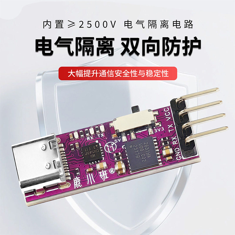 菡诚USB转TTL串口模块6Mbps高速传输CH343隔离防护可调高低电平