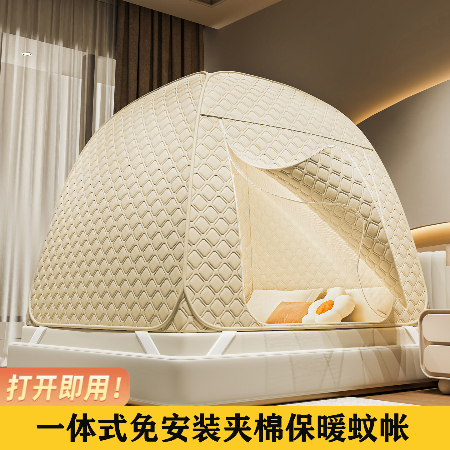 卧室免安装 儿童防摔尘可折叠纹帐双门 蒙古包蚊帐家用2026新款 夏季