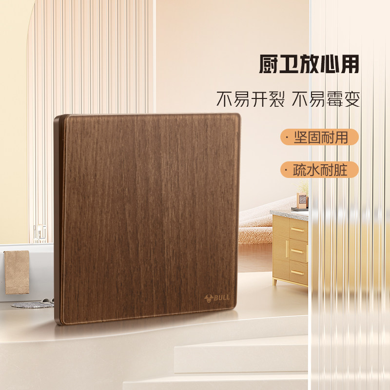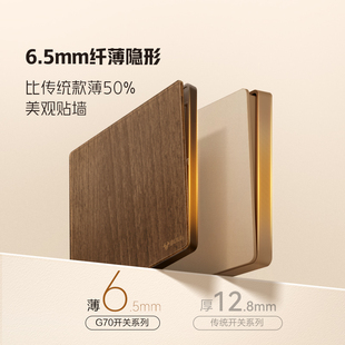 公牛G70超薄开关胡桃木色五孔插座面板86型复古中古仿木纹亚克力由