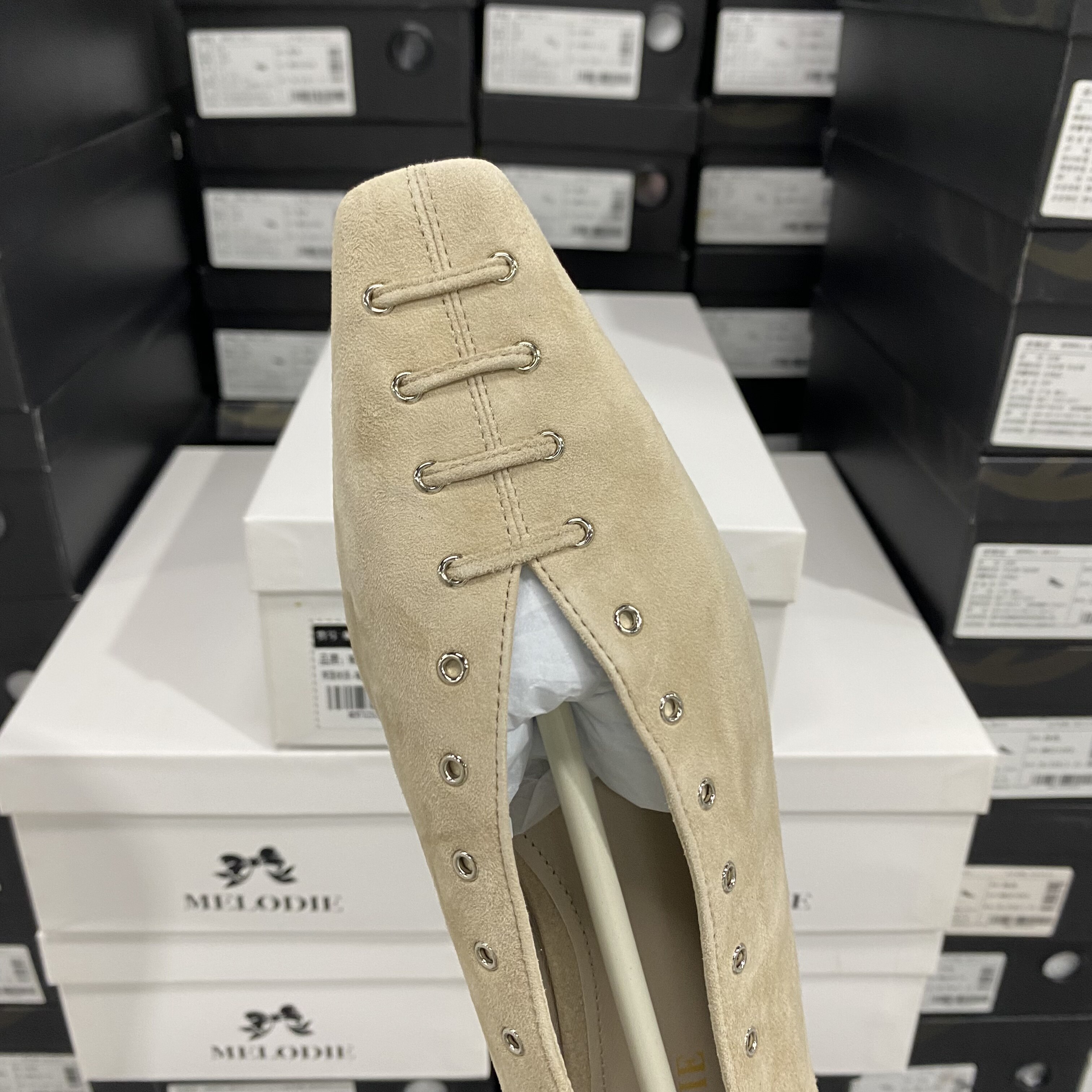7055杏色 实体专柜意大利设计师轻奢品牌平底羊皮方头单鞋由