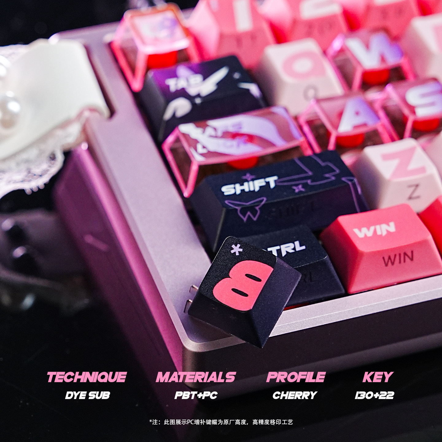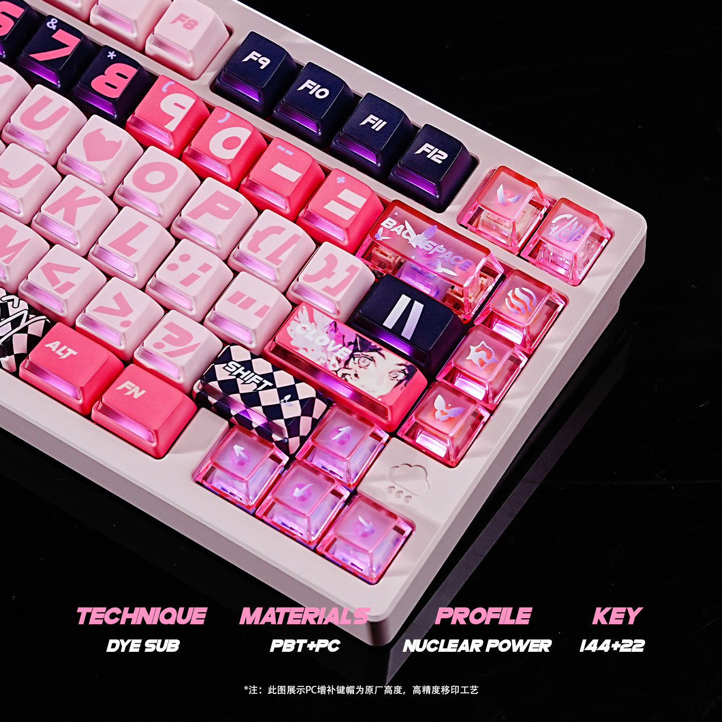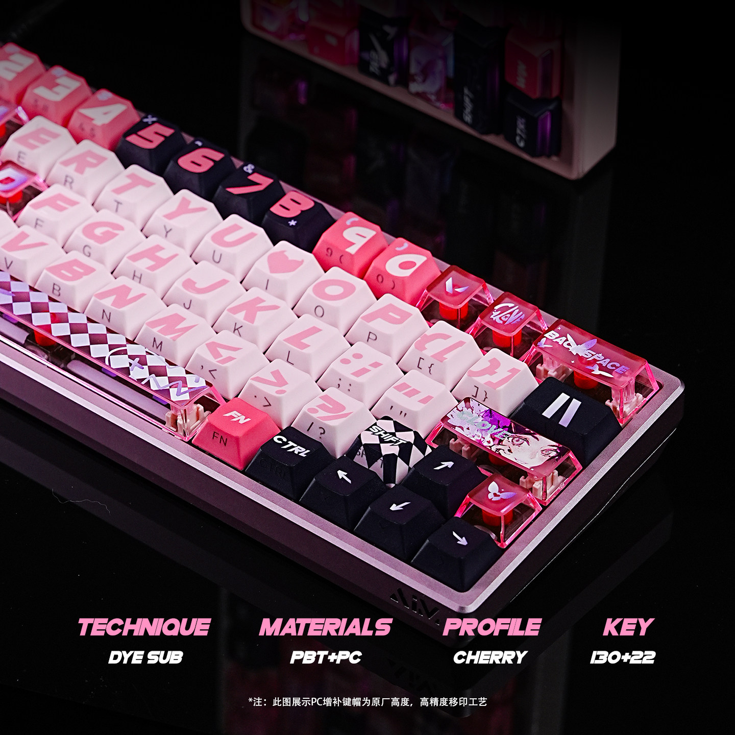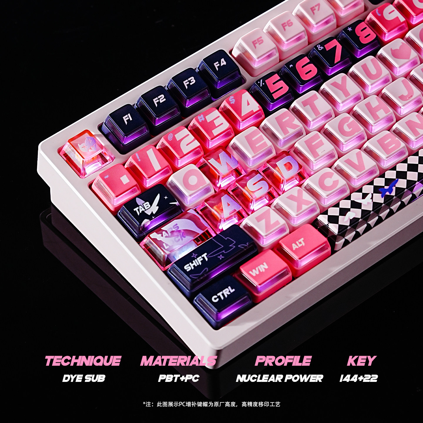 泰坦国度主播女孩键帽超天酱pbt热升华粉色核动力侧透适配wooting