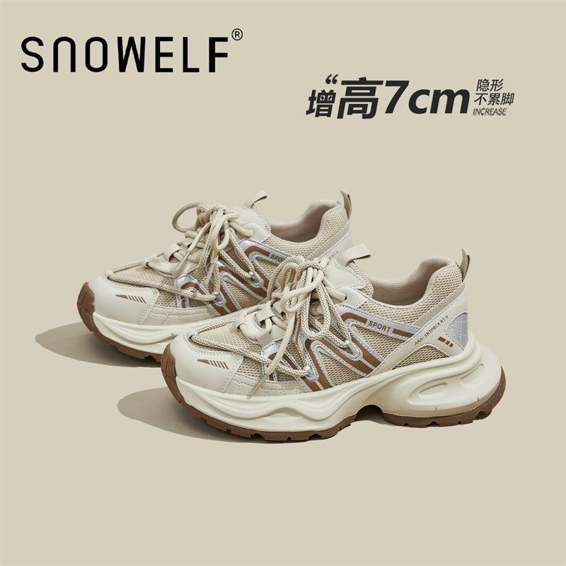 休闲运动鞋 子 新款 女厚底增高女鞋 迪丽热巴同款 骆驼银月老爹鞋