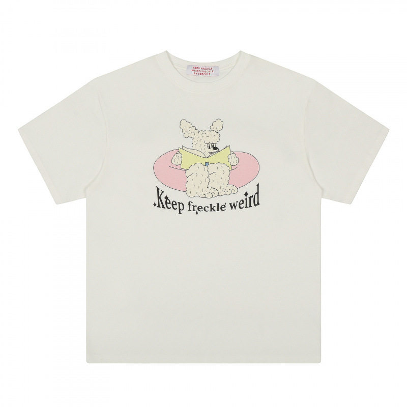 为您提供商品韩国小众潮牌Freckle卡通小狗看书印花短袖 宽松圆领ins风 T恤夏季的详细介绍,