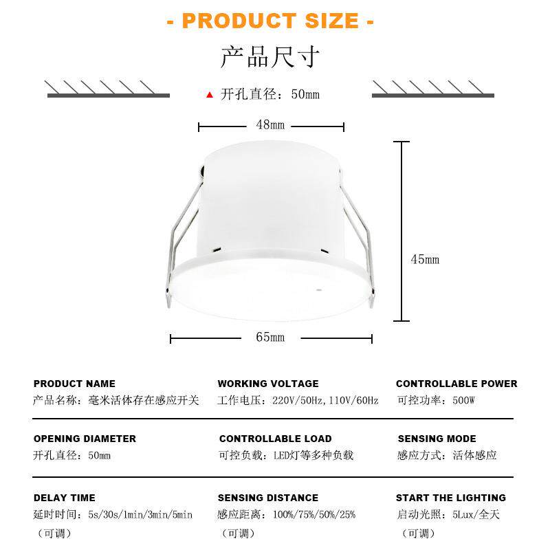 为您提供商品220V 24G毫米波雷达感应开关 人体存在感应开关智能调节灯嵌入式的详细介绍,