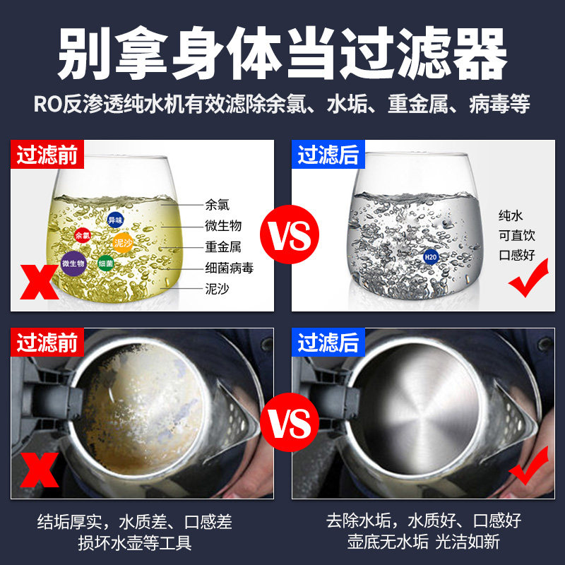 为您提供商品净水器家用ro反渗透微废水厨房自来水过滤器直饮除水垢净水机省水的详细介绍,