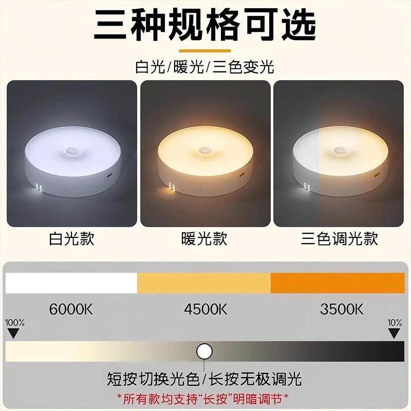 智能人体自动感应小夜灯磁吸充电大容量夜间起夜人来即亮人走即灭