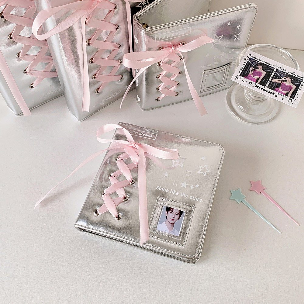 Hisocute高颜值皮质亮面银色卡册A5A7丝带蝴蝶结相册追星收纳册女