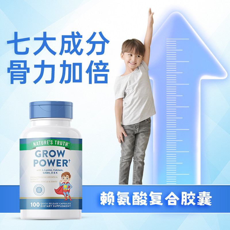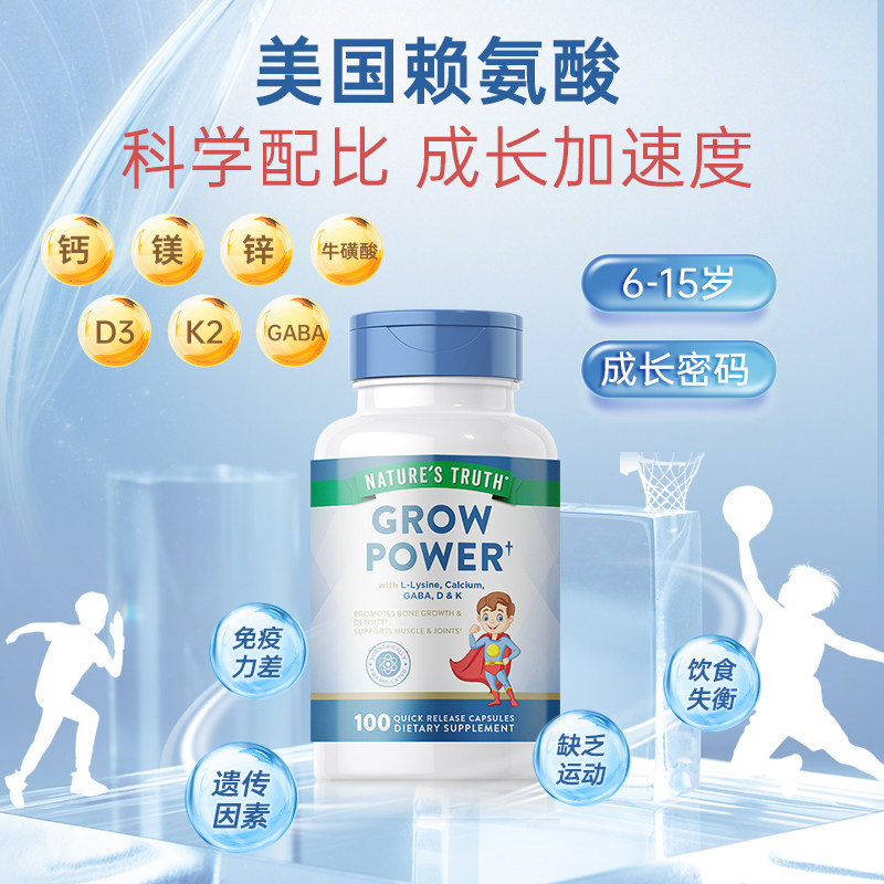 自然之珍赖氨酸成长胶囊青少年儿童补钙镁锌维生素D3k2美国进口由