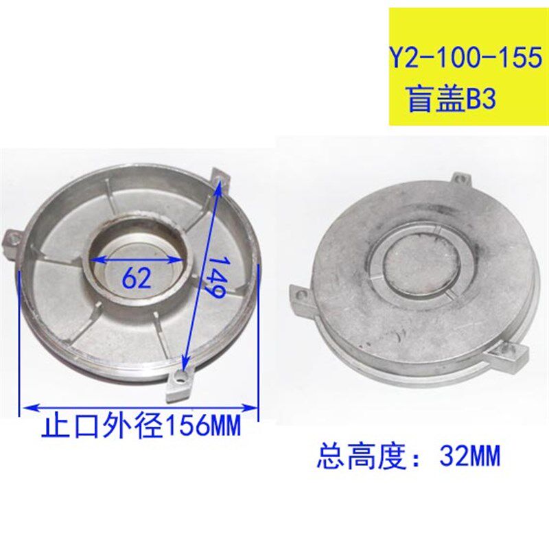 冷却塔封闭式 100电机端盖后壳1.1 3KW三柱 电机B3盲盖铝封底Y2由