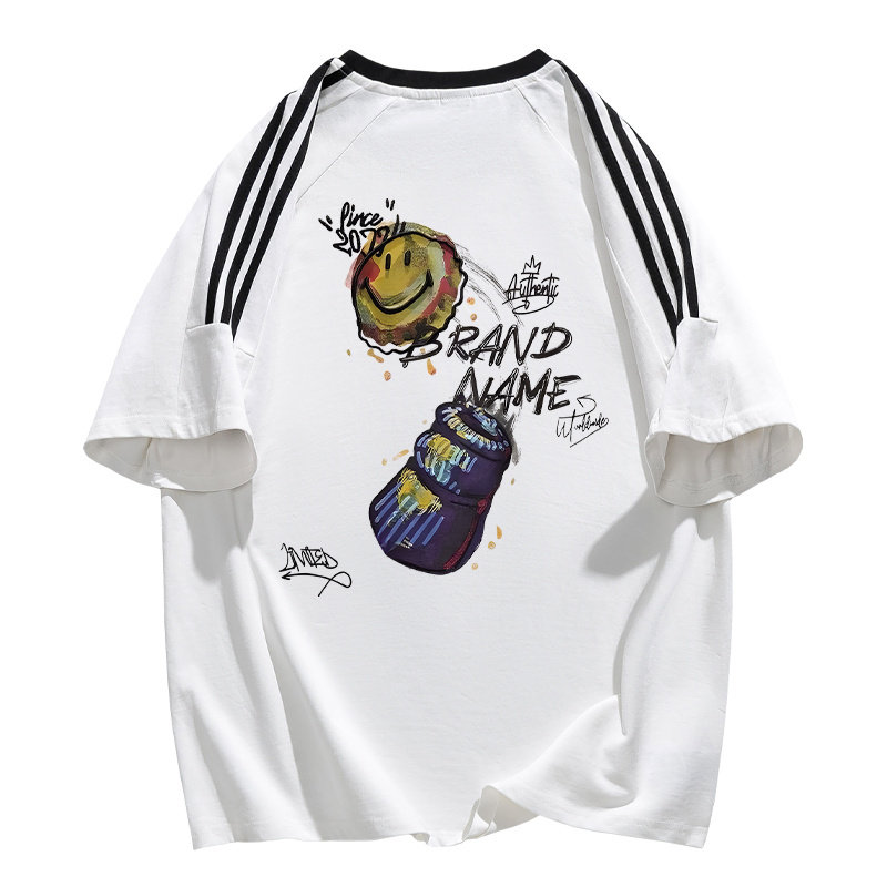 LA短袖 宽松百搭印花上衣白色11 T恤男女情侣落肩袖