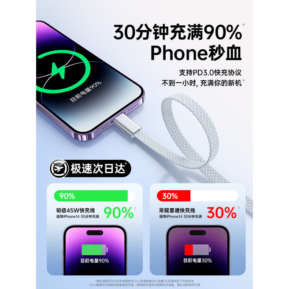 30W官方快充铂信适用苹果14promax充电器线iphone13数据线PD头17 15手机12车载ipad品2米加长lighting正45