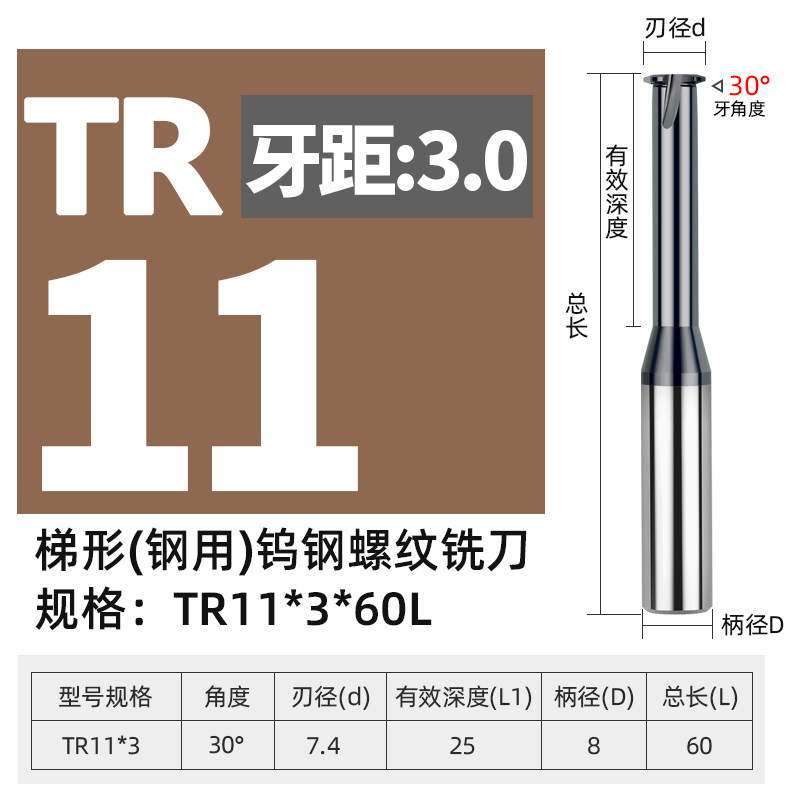 为您提供商品30度牙型单齿铣牙刀不锈钢用TR牙刀 65度高硬钨钢单牙T型螺纹铣刀的详细介绍,