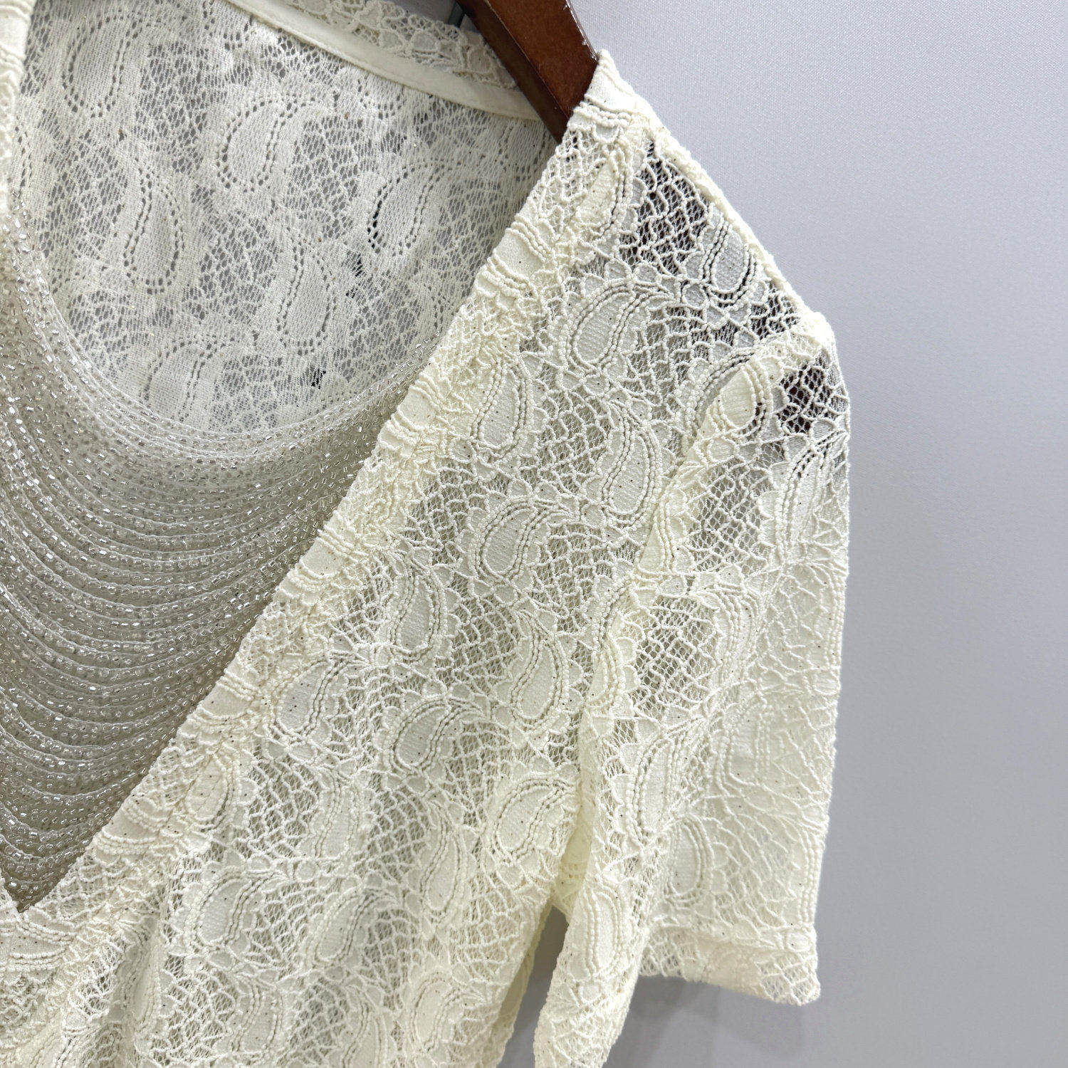 ⭐小红书推荐⭐显瘦性感镂空短袖 上衣 里亚尔2616欧货春夏设计感串珠链条荡领修身,所属蕾丝衫/雪纺衫分类,由淘宝网挑选推荐!小红书抖音网红同款!哪里有卖显瘦性感镂空短袖 上衣 里亚尔2616欧货春夏设计感串珠链条荡领修身和多少钱质量怎么样✅。