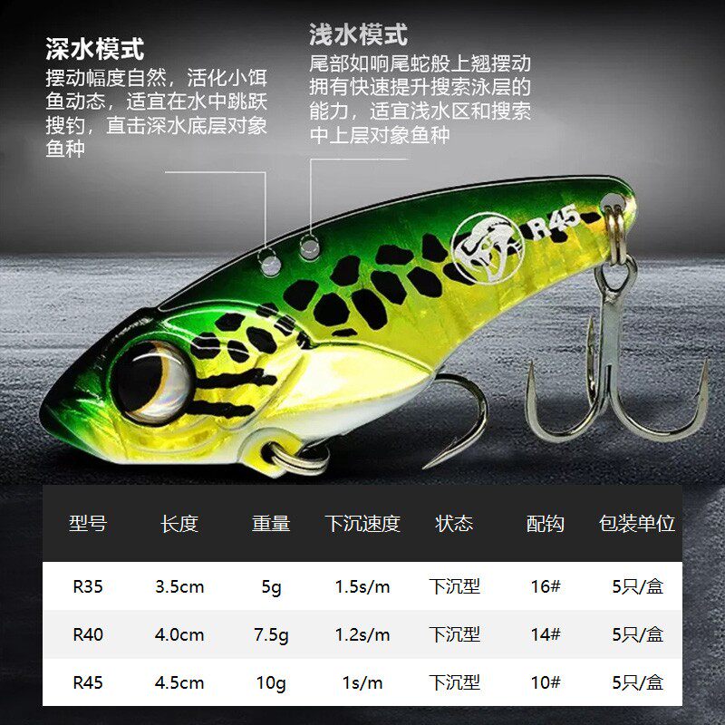 为您提供商品R45实战装 翘嘴鳜鱼远投金属路亚假饵 R40 大河奔流VIB响尾蛇R35的详细介绍,