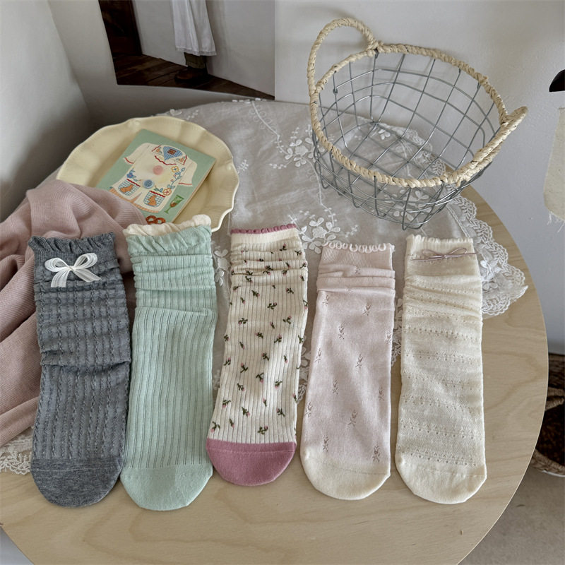 为您提供商品songmu透气袜子春夏新款 湖光桃粉蝴蝶结中筒堆堆袜女春夏 包邮 4双的详细介绍,