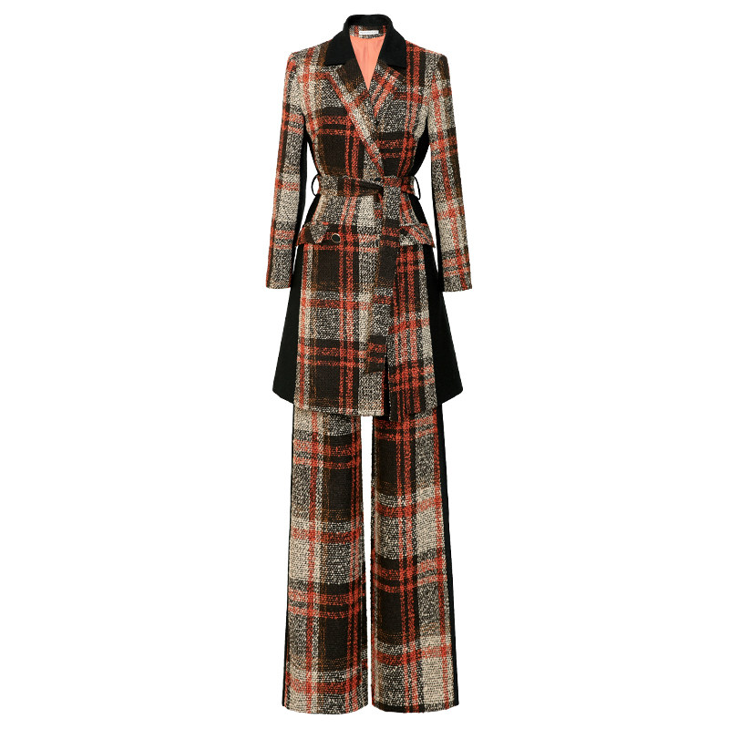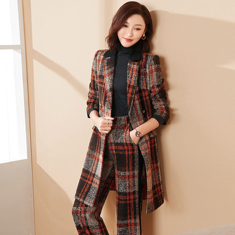 洋气L显瘦长款 格子毛呢套装 女秋冬2021年新款 时尚 两件套冬 阔腿裤