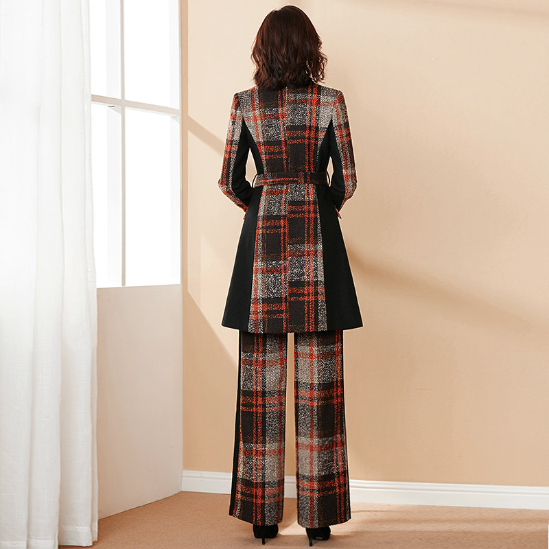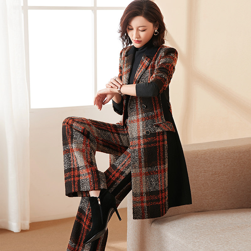 为您提供商品洋气L显瘦长款 格子毛呢套装 女秋冬2021年新款 时尚 两件套冬 阔腿裤的详细介绍,