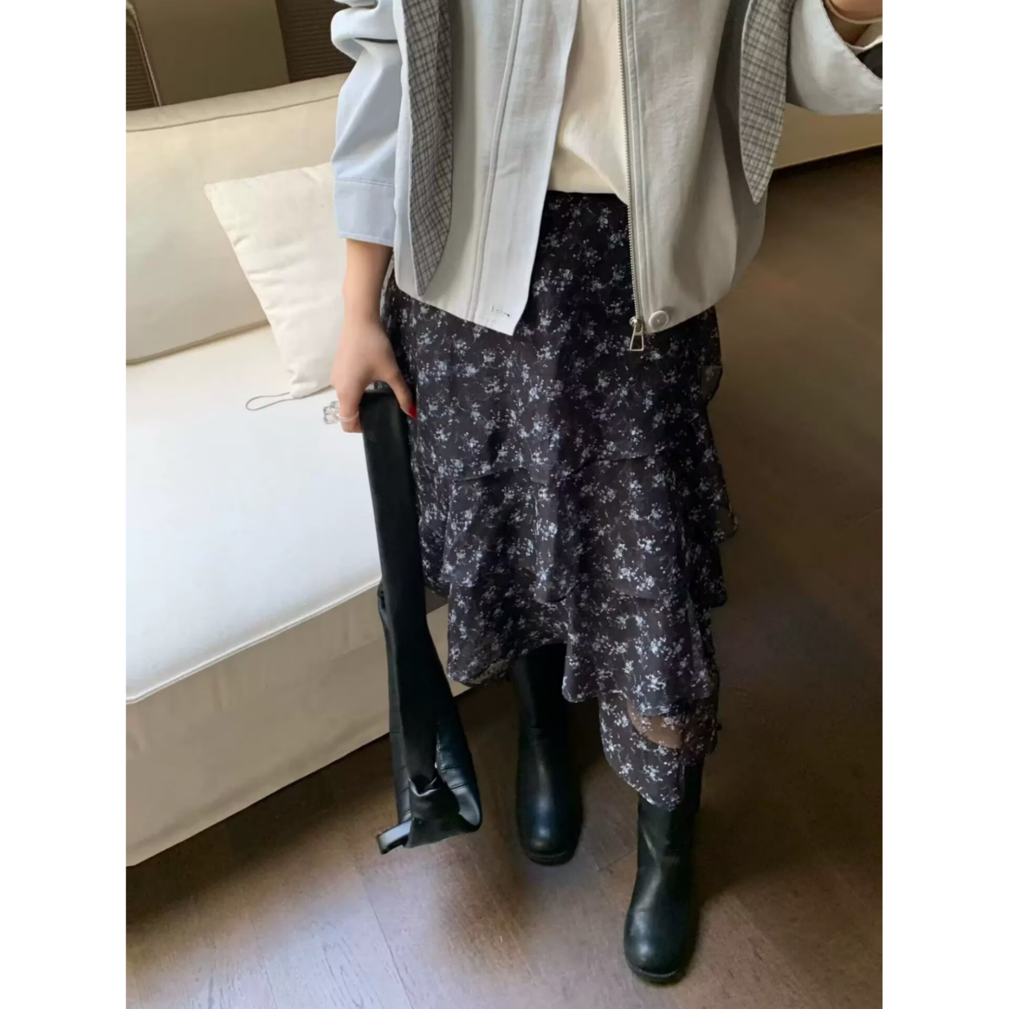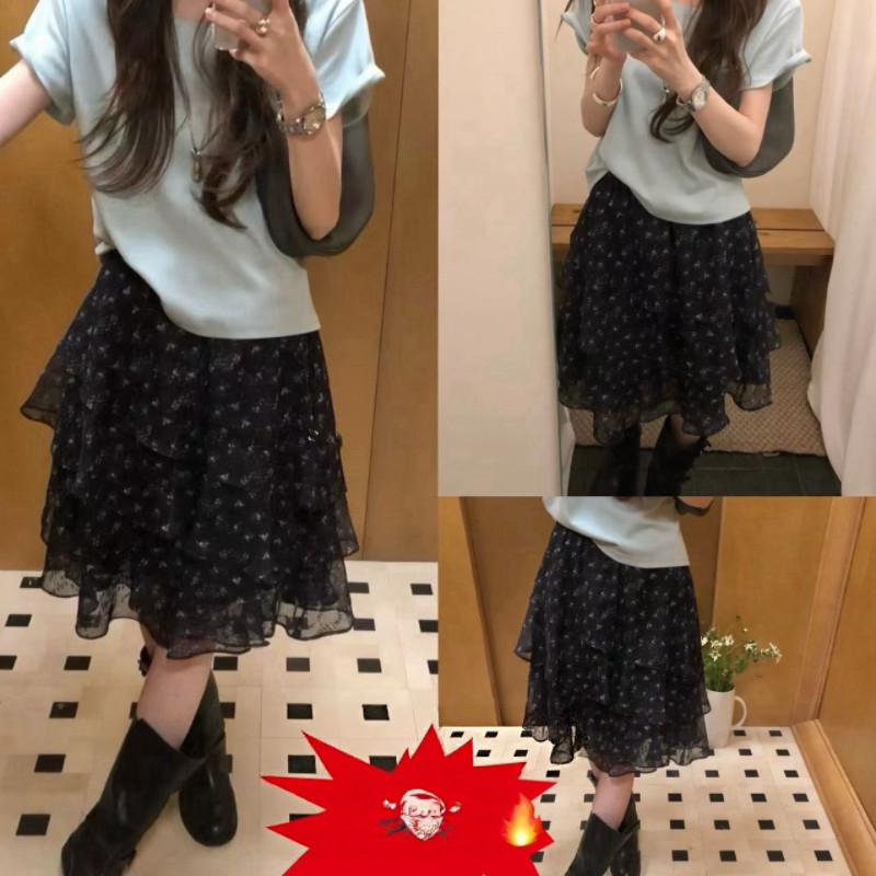 新款 韩系温柔风后松紧腰不规则荷叶边碎花半身裙女 1150夏装 3.25由