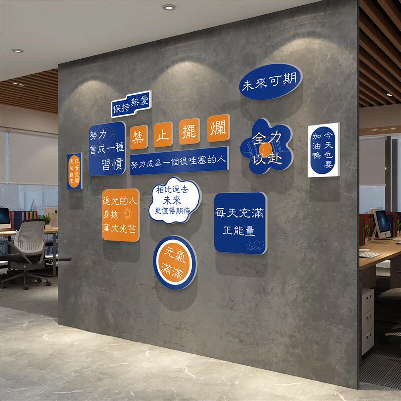 饰氛围布置公司企业办公室文化墙面 员工团队激励标语励志贴画纸装