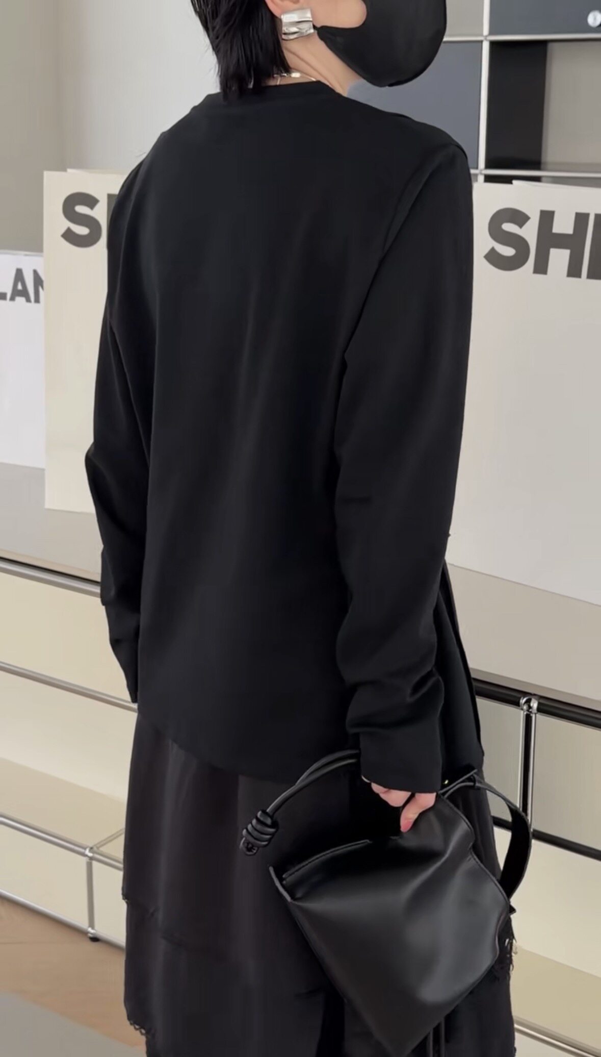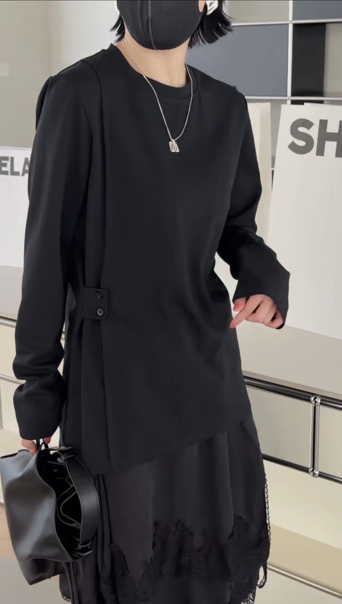 862时尚 妍西家 诗歌兰女装 26春款 T恤显瘦打底侧搭扣 黑色圆领长袖由