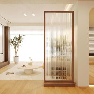 现代简约进门遮挡玻璃隔断 中古风入户玄关客厅免打孔实木屏风日式由