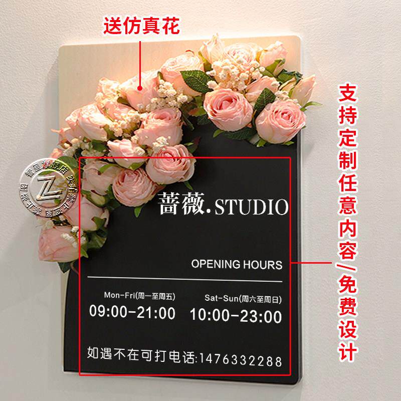 营业时间告示牌门店工作室门牌标识亚克力广告牌展示店铺门口挂牌由
