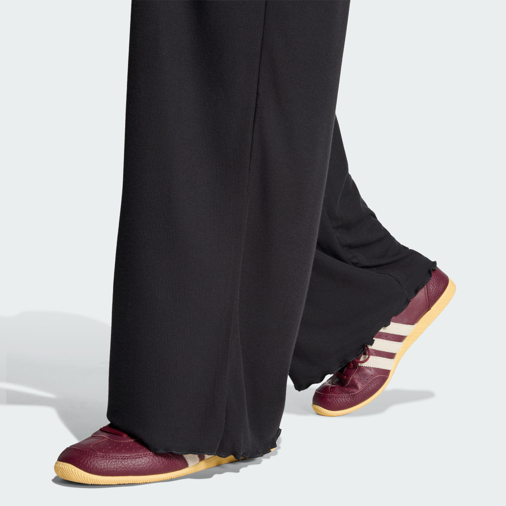 休闲裤 KE1093 波浪边舒适时尚 阿迪达斯三叶草女子黑色阔腿运动长裤