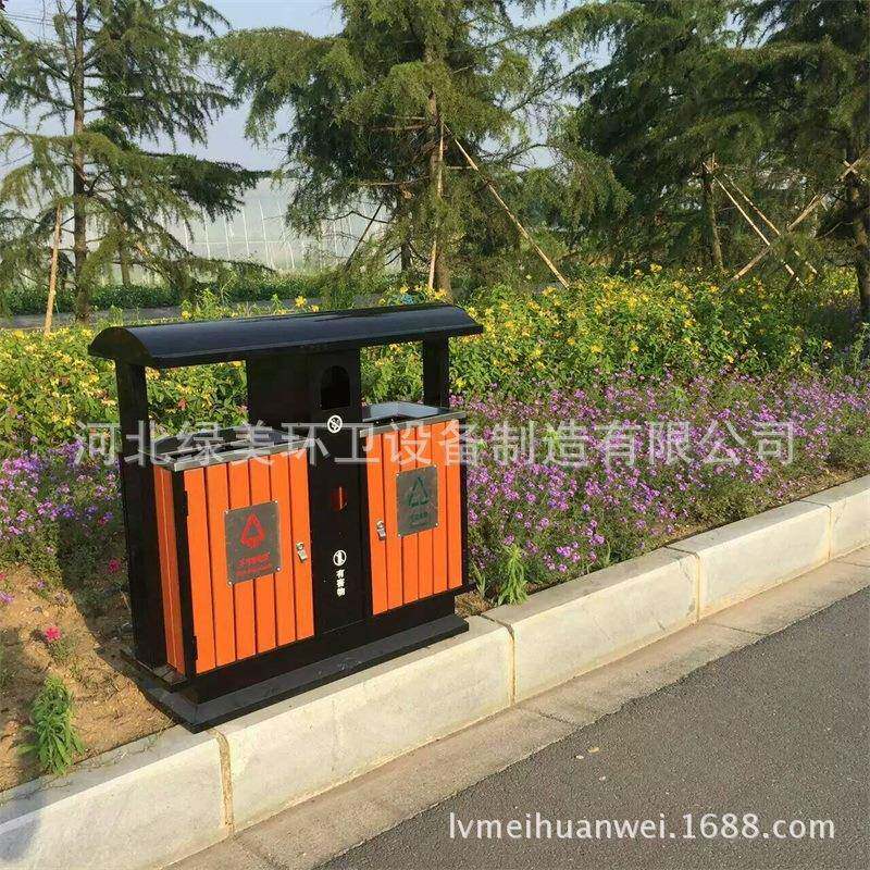 为您提供商品小区钢木垃圾桶双筒果皮箱环卫环保分类垃圾箱厂家的详细介绍,