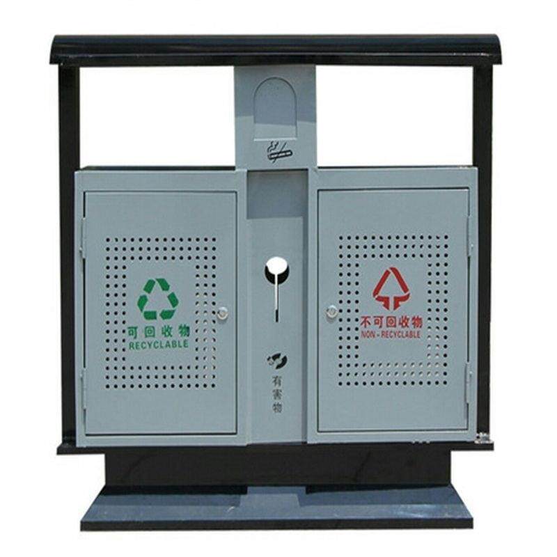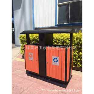 小区钢木垃圾桶双筒果皮箱环卫环保分类垃圾箱厂家