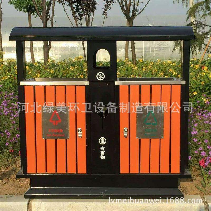小区钢木垃圾桶双筒果皮箱环卫环保分类垃圾箱厂家由