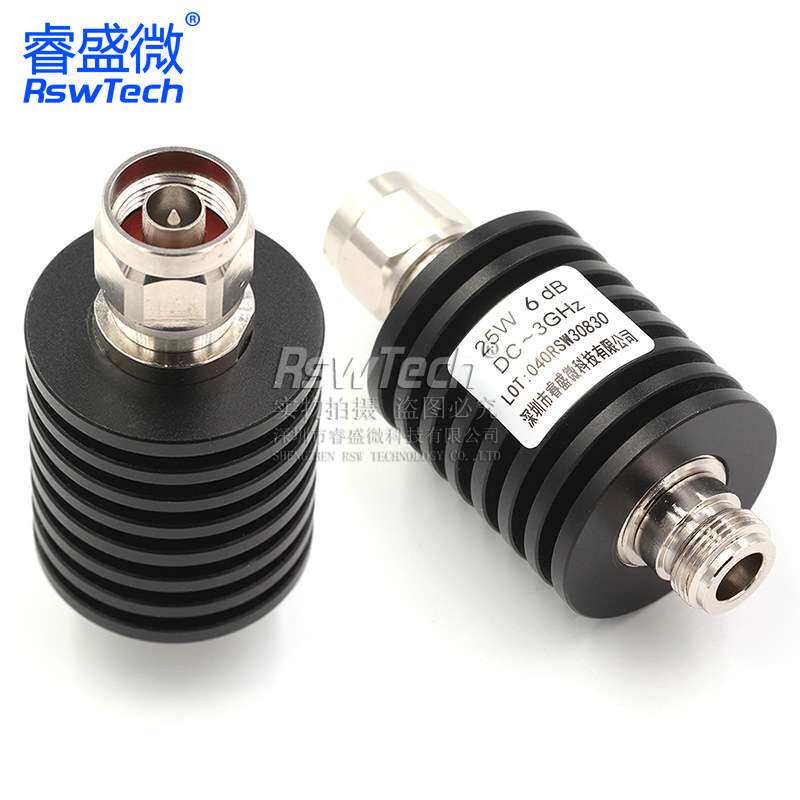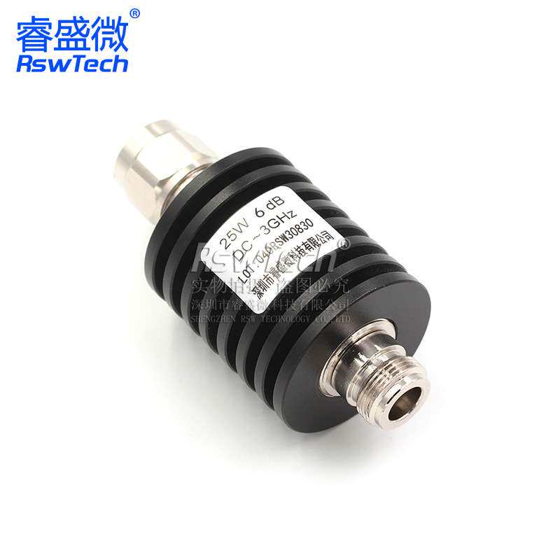 射频微波 6DB公转母50欧姆睿盛微 大功率同轴衰减器 N型25W衰减器由