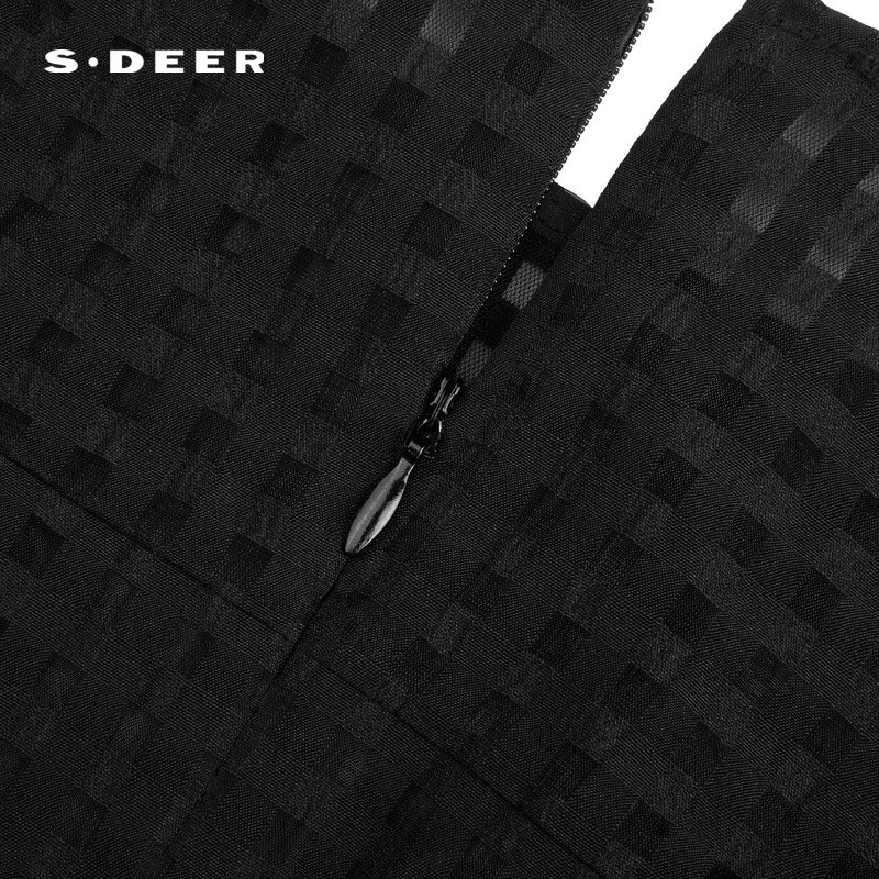 sdeer圣迪奥女装 连衣裙S232Z12RG 圆领格子收腰网纱泡泡袖由