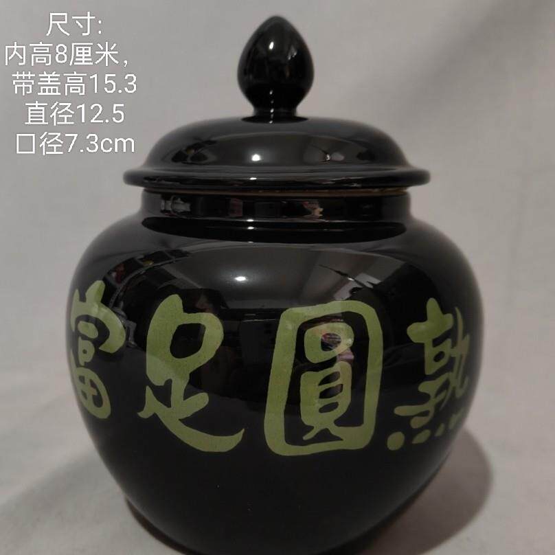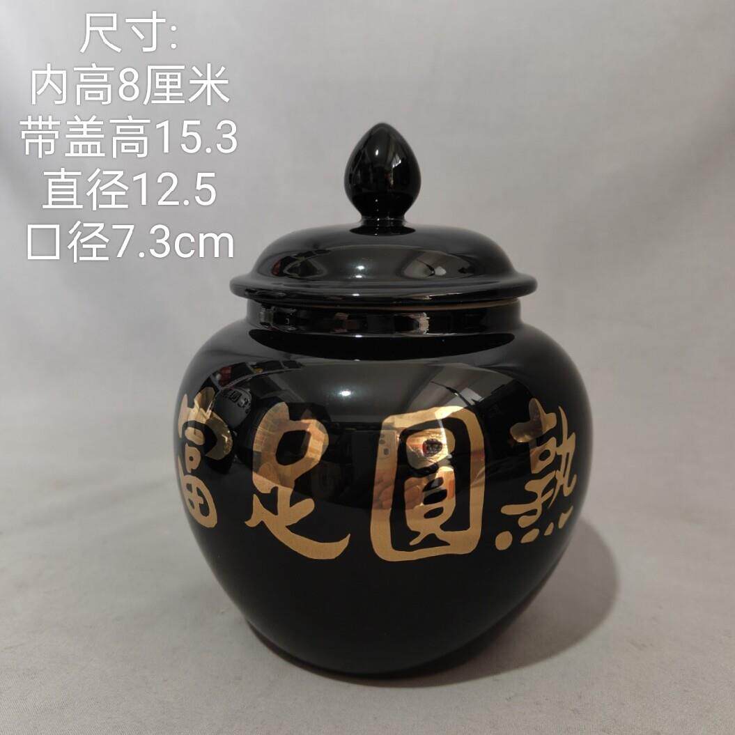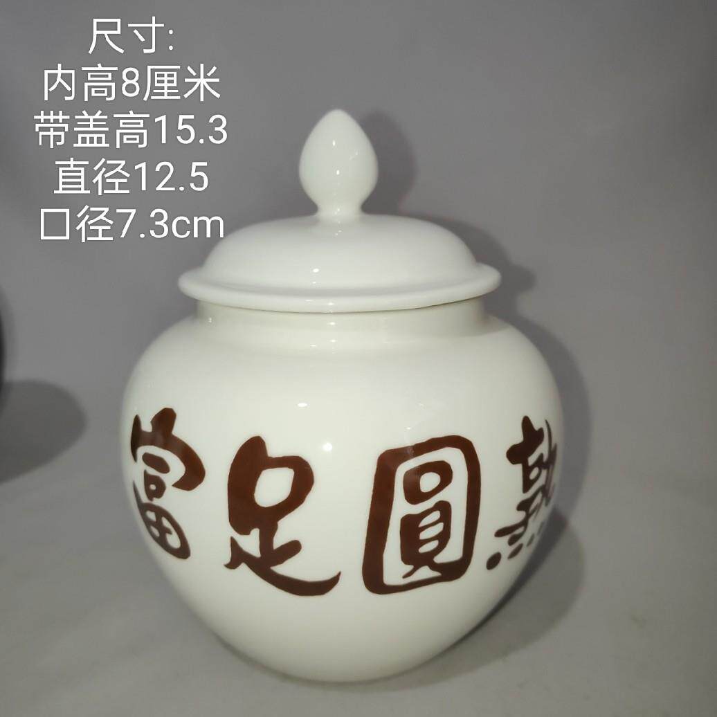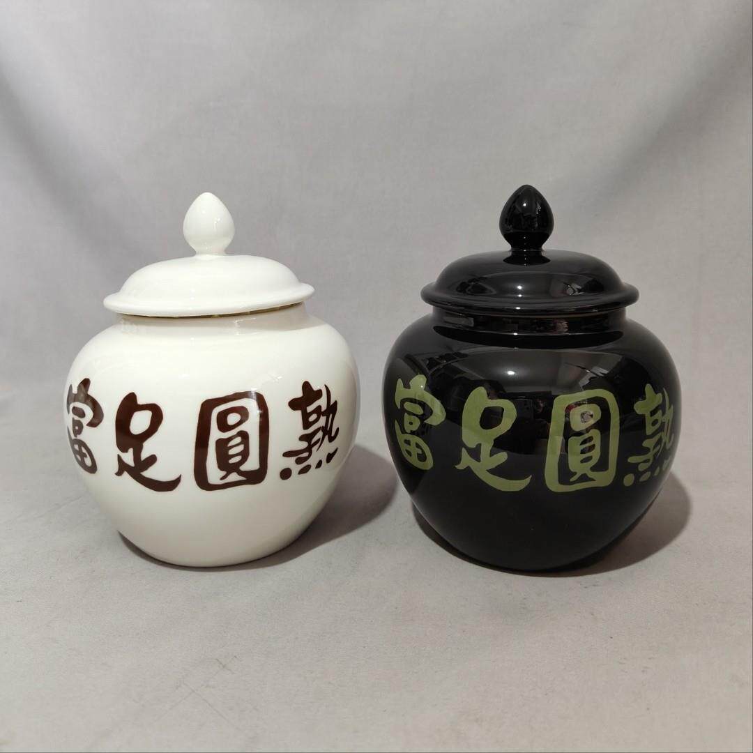 道学陶瓷罐摆件 小号700ml富足圆熟白色罐咖啡色字白咖易经聚宝盆